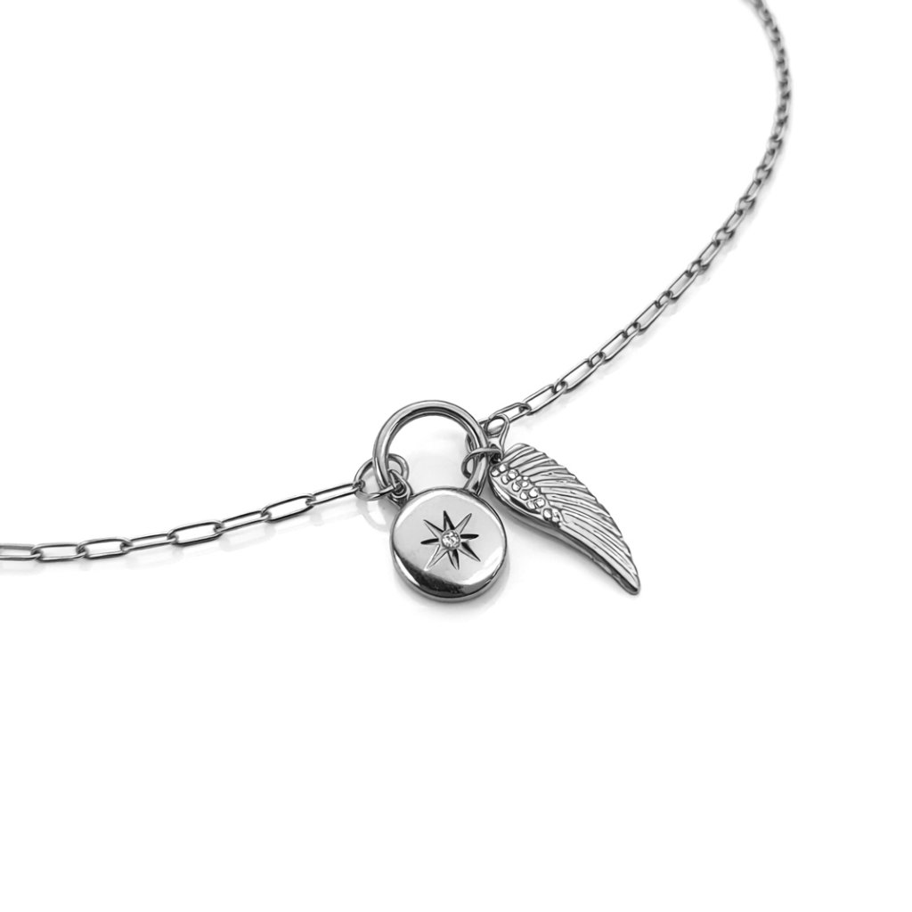 Dámský ocelový náramek Tavinea Silver s andělským křídlem a zirkony ♀️ DG Šperky