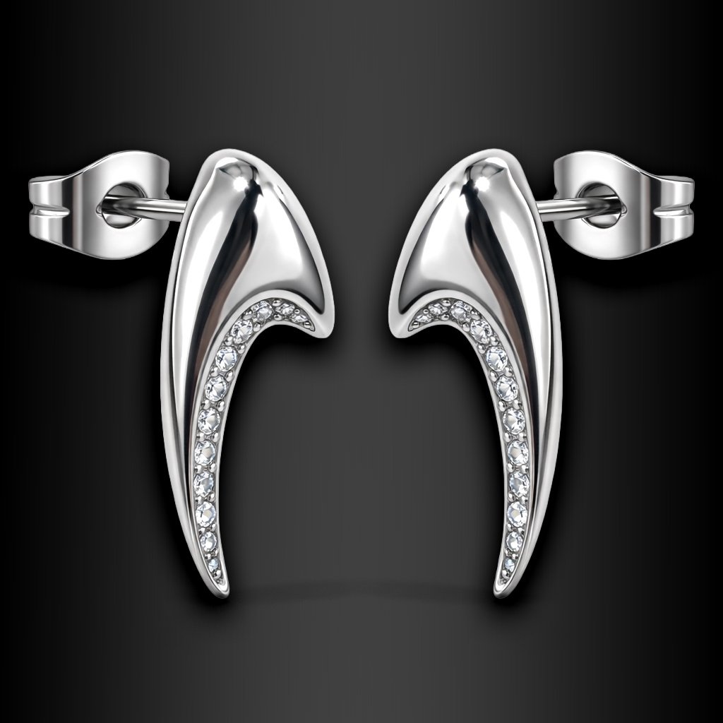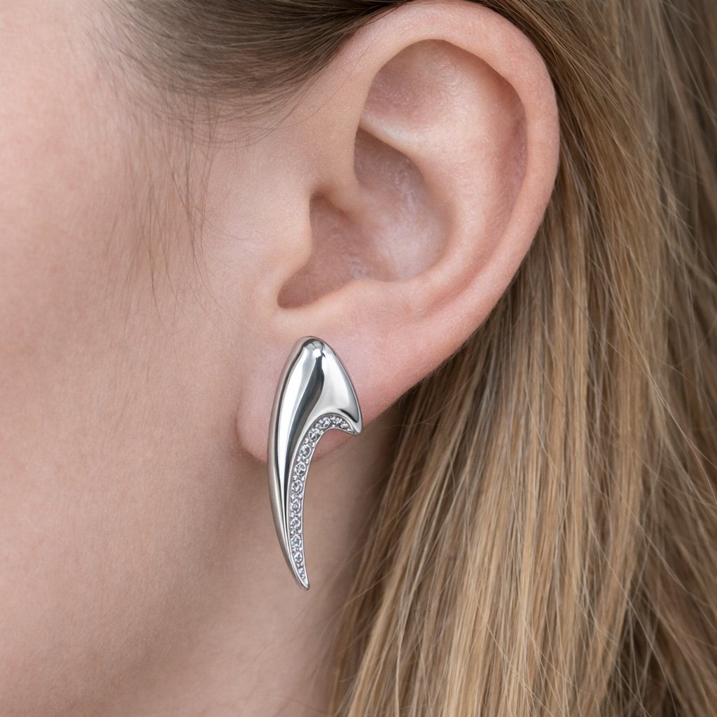 Althira jsou dámské ocelové náušnice, které okamžitě přitáhnou pozornost svým odvážným, elegantně zakřiveným tvarem. Působí moderně, lehce futuristicky a přesto si zachovávají ženskou jemnost. Linie zdobená drobnými zirkony zachycuje světlo při každém pohybu a dodává náušnicím sofistikovaný třpyt.