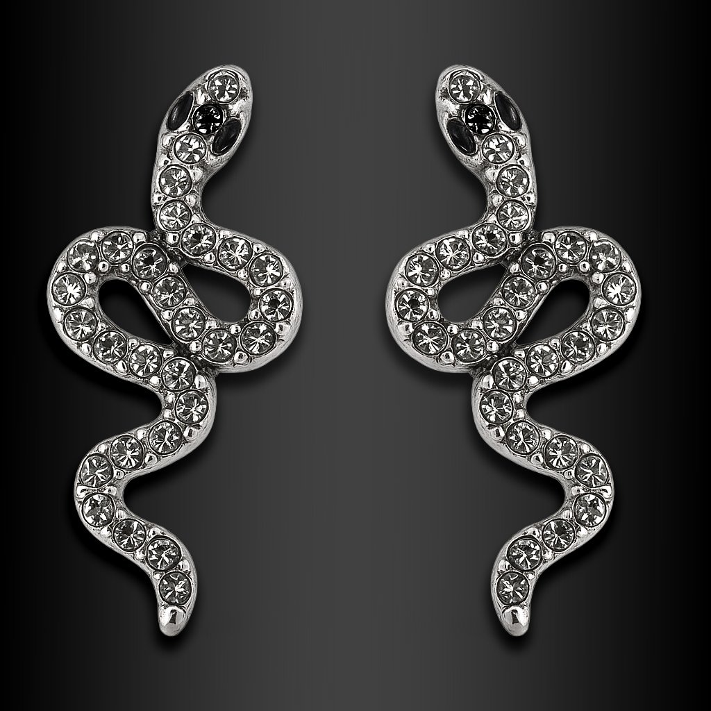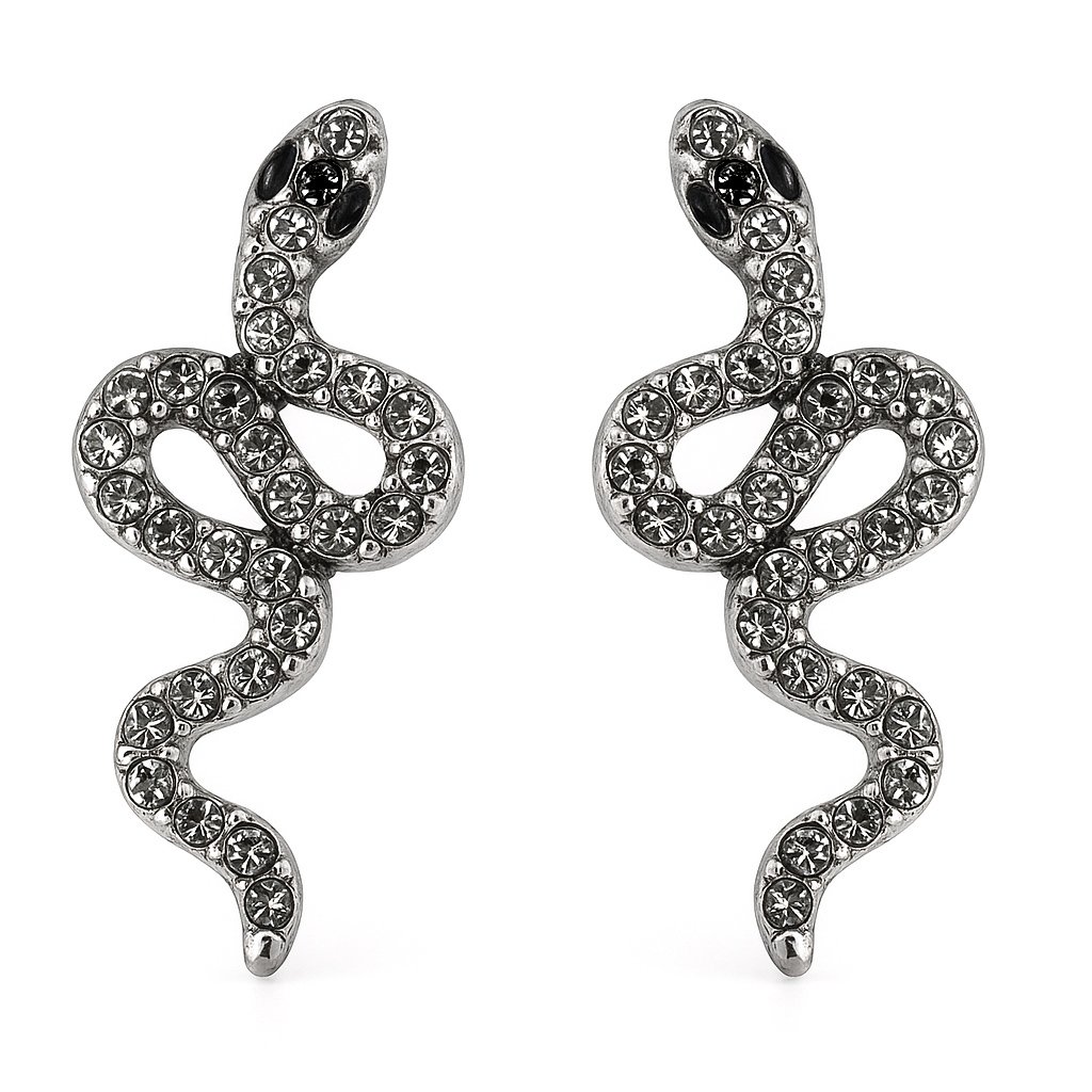Nadčasové ocelové náušnice Aspira ve tvaru hada, zdobené zirkony – dokonalý detail pro ženy, které milují originalitu 🖤 Exkluzivně na DG Šperky