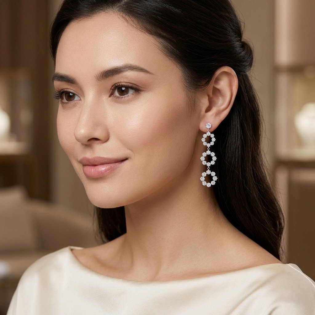 Kruhový motiv patří mezi nadčasové symboly elegance a harmonie. U náušnic Bellavire se tento motiv opakuje ve třech úrovních, díky čemuž vzniká dlouhá a velmi elegantní silueta, která krásně prodlužuje linii krku a zvýrazňuje rysy obličeje.