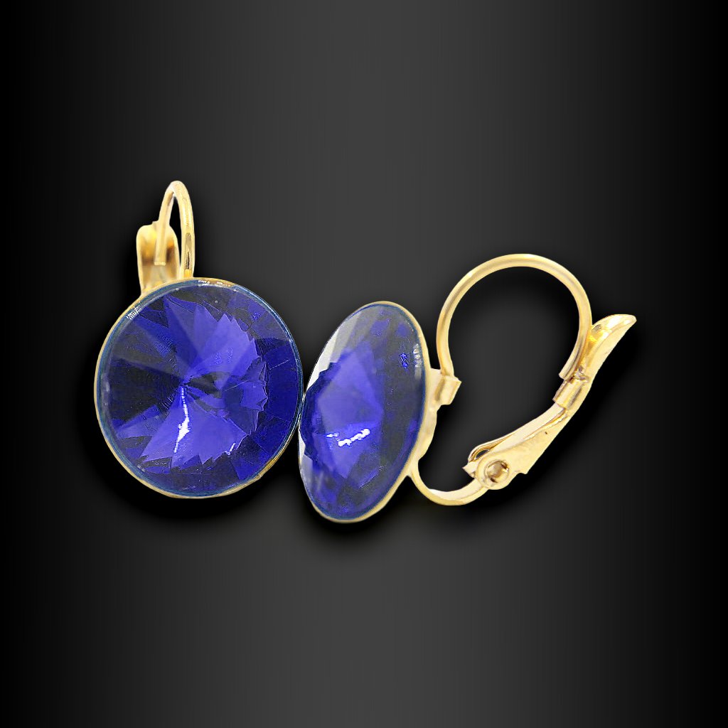 Visací náušnice Bellisia Saphira Gold v sobě spojují luxusní zlaté tělo z chirurgické oceli a zářivý zirkon v hlubokém fialovo-modrém odstínu, který připomíná safír při večerním osvětlení.