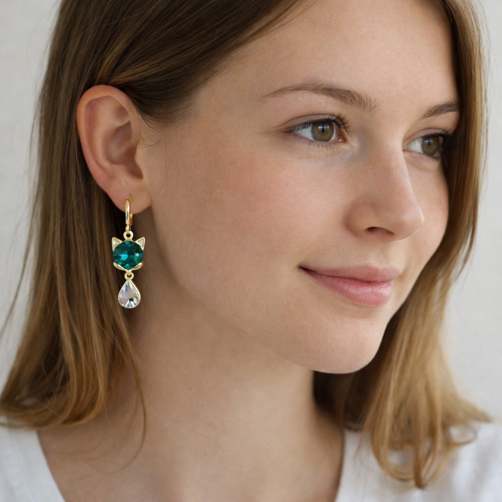 Coralynne jsou náušnice, které si nehrají na nenápnost. Jejich design staví na symbolice kočky – bytosti, která je odjakživa spojována s elegancí, tajemstvím a vnitřní silou. Stylizovaný motiv kočičí hlavy je osazen výrazným barevným kamenem, jenž okamžitě přitahuje pohled a dodává šperku hloubku.