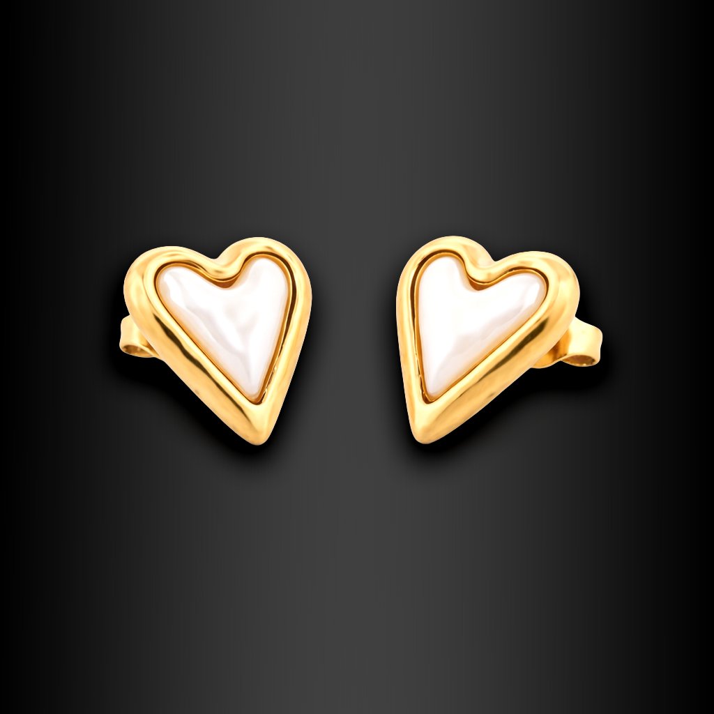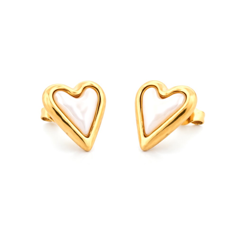 Dámské ocelové náušnice Coria Gold se srdcem a perletí ♀️ DG Šperky