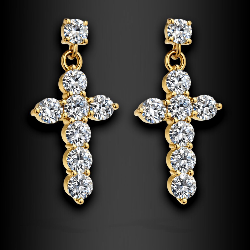 Dámské ocelové náušnice Crae gold ve tvaru křížků se zirkony ♀️ DG Šperky