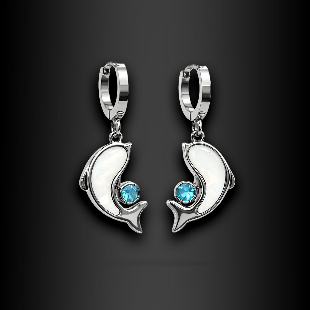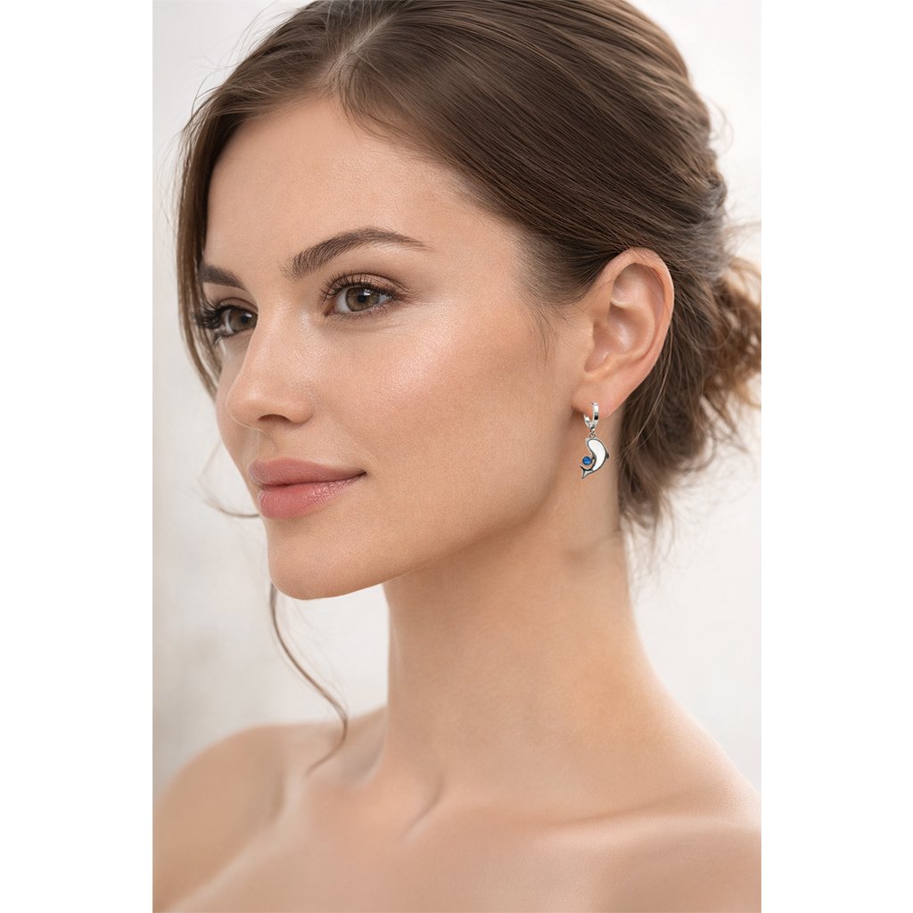 Stříbrné provedení vytváří čistý a nadčasový základ, který krásně kontrastuje s modrým kamenem zasazeným v těle delfína. Díky hladkým liniím a jemnému lesku působí náušnice elegantně, ale zároveň neformálně a přirozeně.