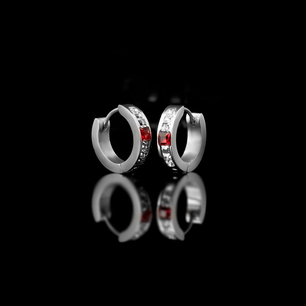 Náušnice ocelové drobné kruhy s krystalky Red | DG Šperky + Doprava zdarma + Dárkové balení zdarma