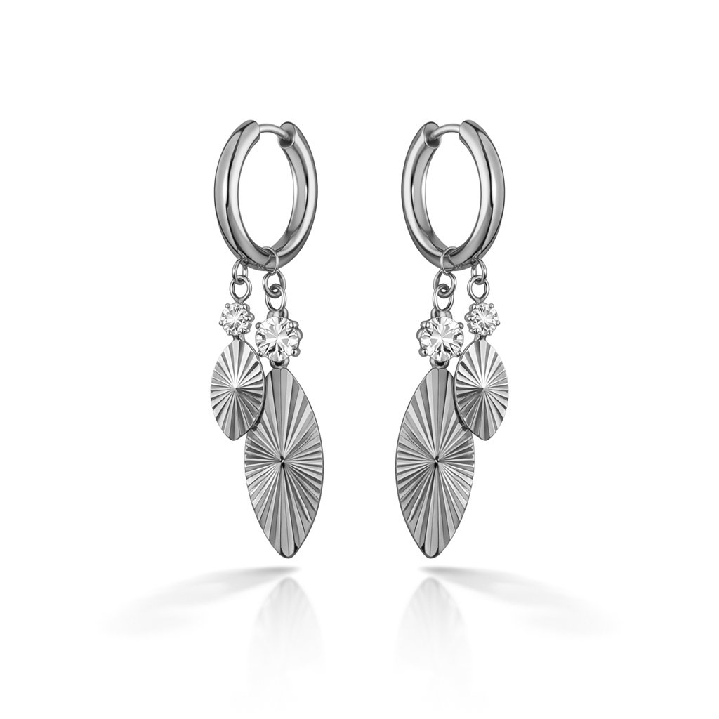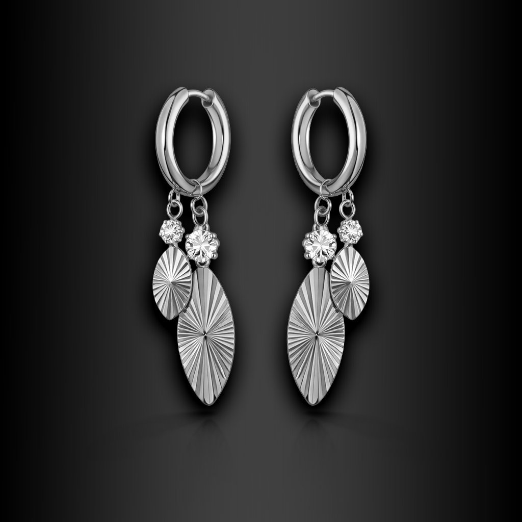 Elanthis jsou dámské ocelové náušnice navržené tak, aby vynikly pohybem, leskem a jemnou strukturou. Hladké kroužky doplňují visací přívěsky s dekorativním rytím, které zachytává světlo a dodává náušnicím elegantní živost.
