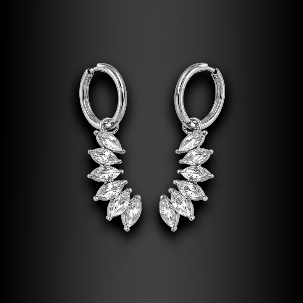 Kardisia jsou dámské náušnice, které zaujmou na první pohled svou harmonií tvaru a lesku. Jemný kroužek o velikosti ± 1,3 cm působí decentně a čistě, zatímco výrazná ozdoba o délce ± 2,7 cm, osazená třpytivými zirkony, dodává šperku luxusní charakter.