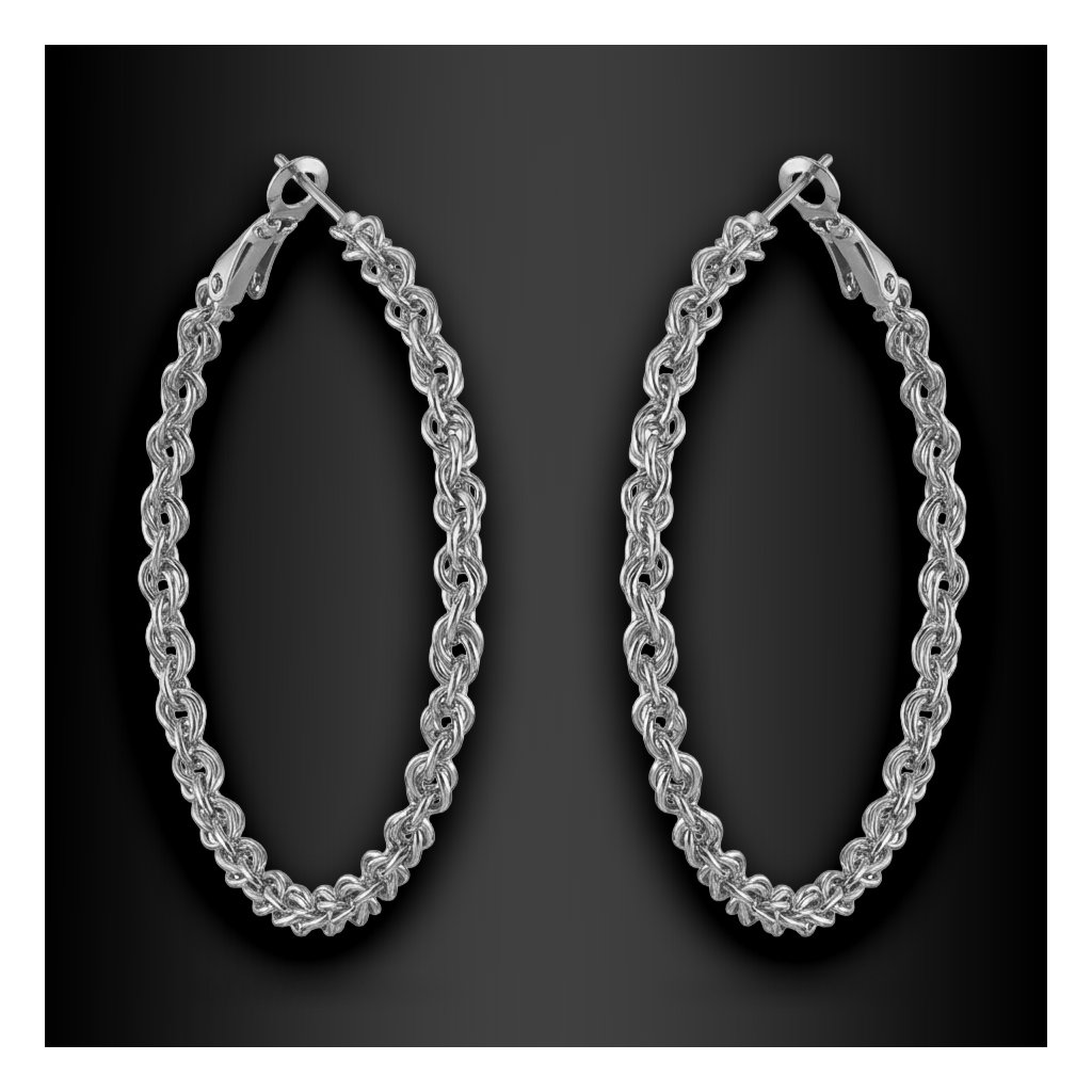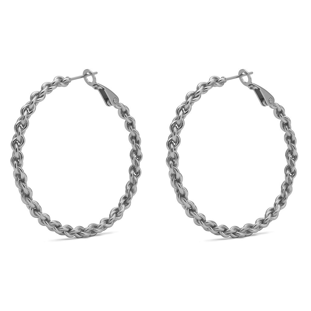 Dámské ocelové náušnice kruhy Karilen Silver 4cm v řetězovém designu ♀️ DG Šperky