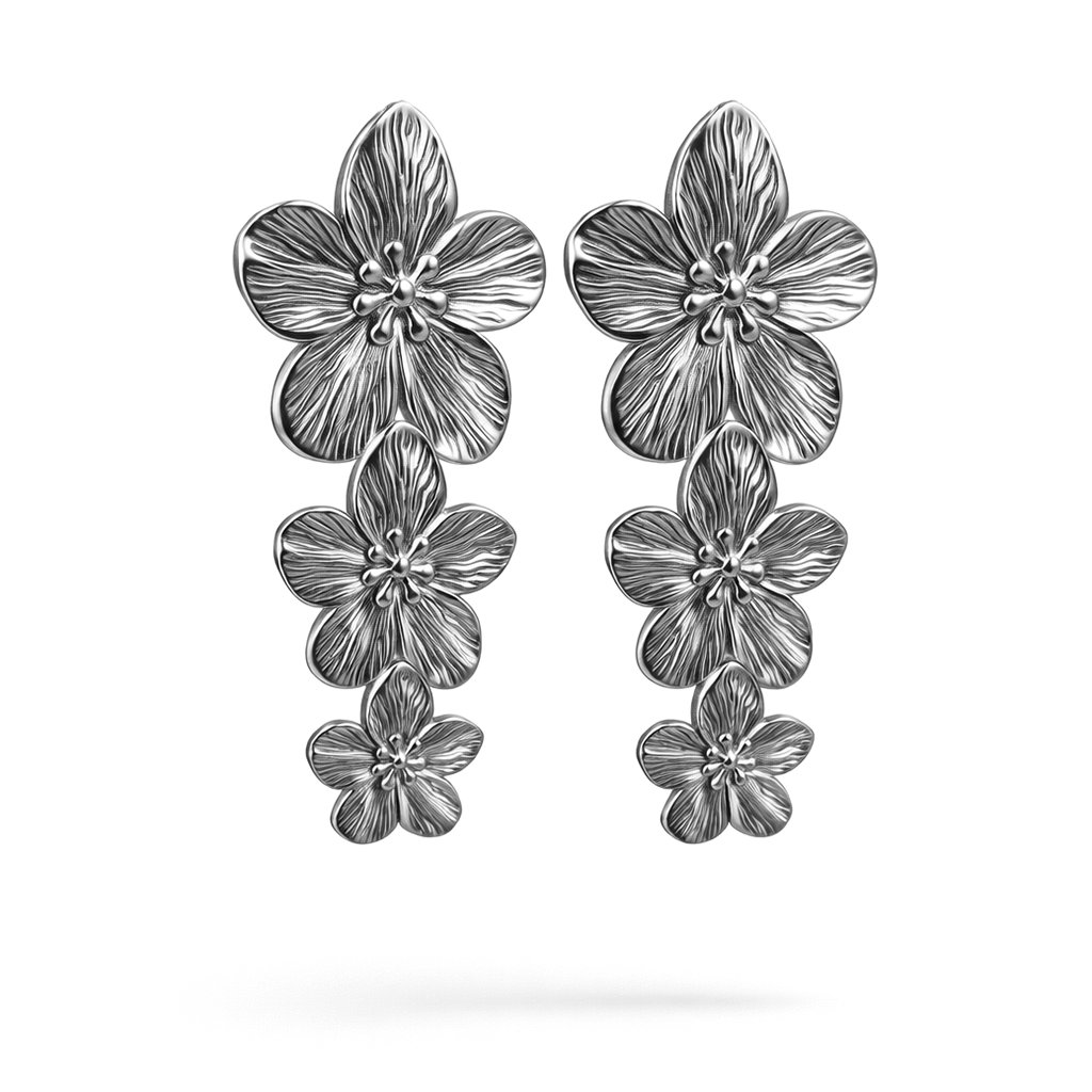 Stříbrné provedení zvýrazňuje plastickou strukturu květů a dodává náušnicím nadčasový, čistý vzhled. Díky jemnému lesku působí elegantně bez zbytečné okázalosti a snadno se kombinují s dalšími šperky.