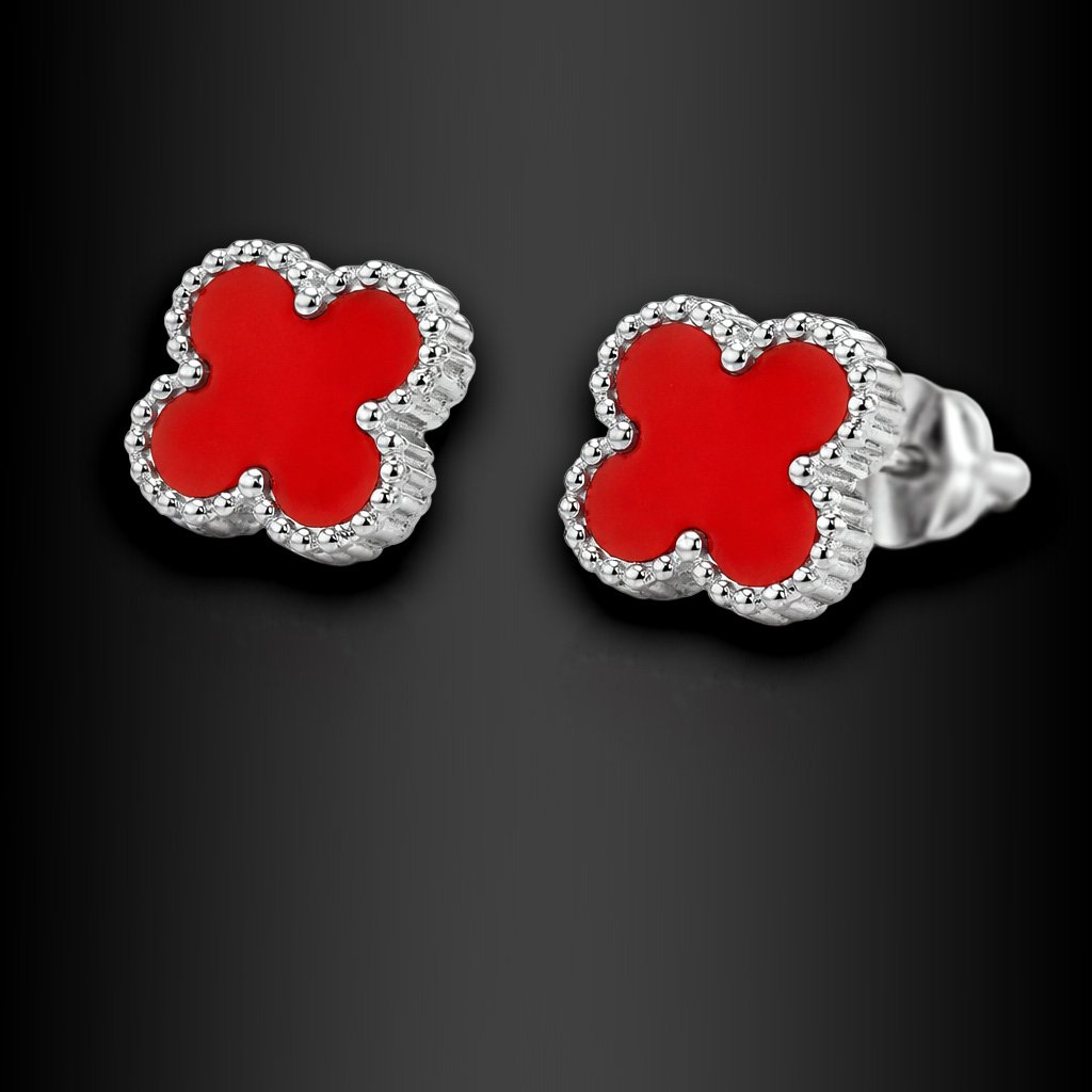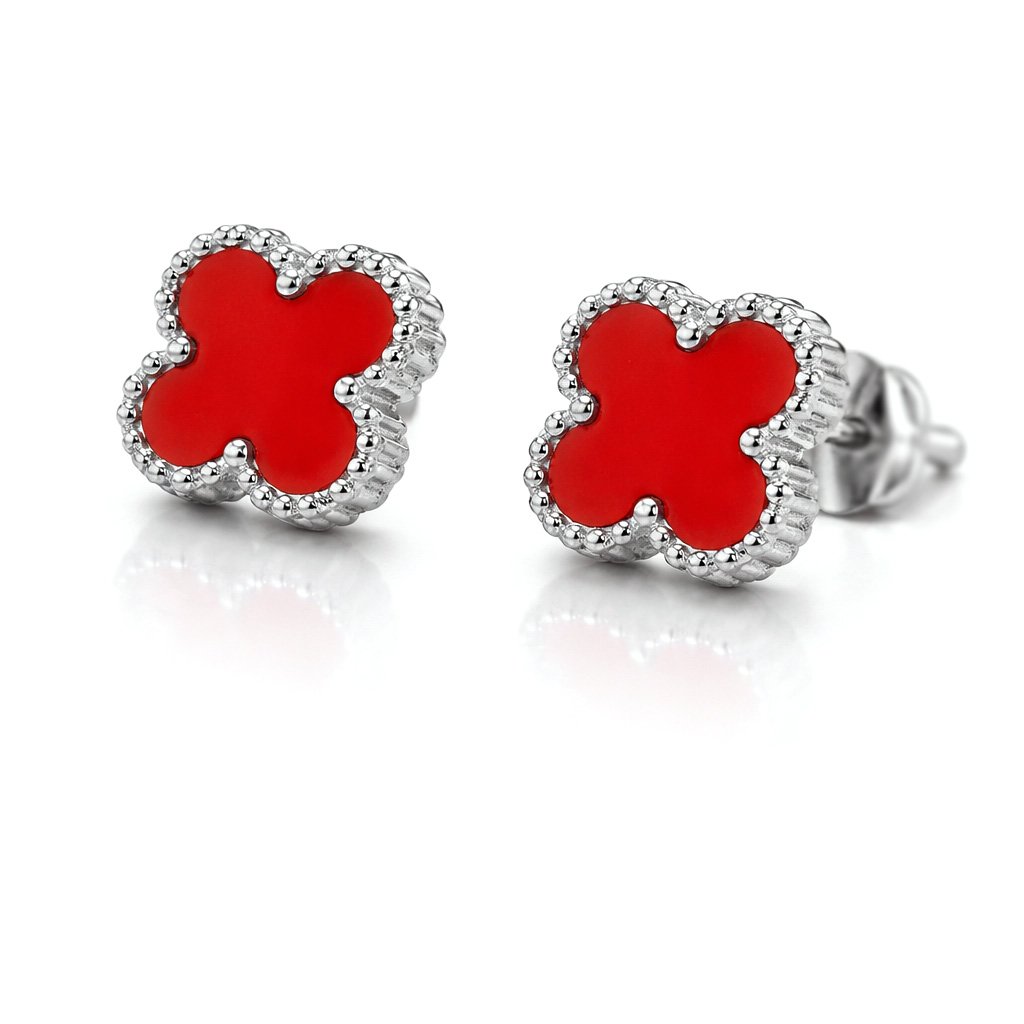 Dámské ocelové náušnice Lunayra Rouge Silver inspirované Alhambra ♀️ DG Šperky
