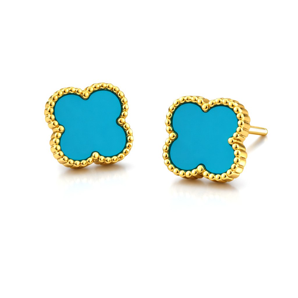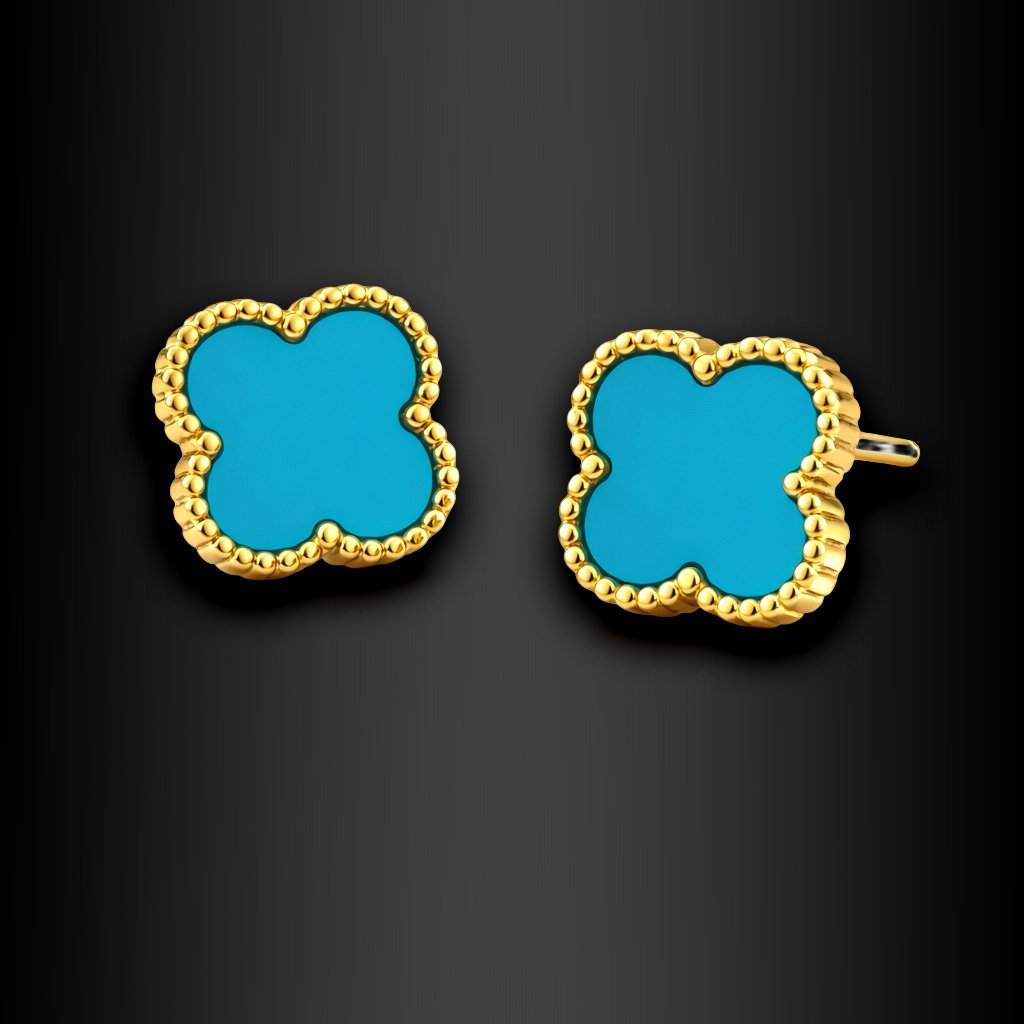 Dámské ocelové náušnice Lunayra Turquoise Gold inspirované Alhambra ♀️ DG Šperky