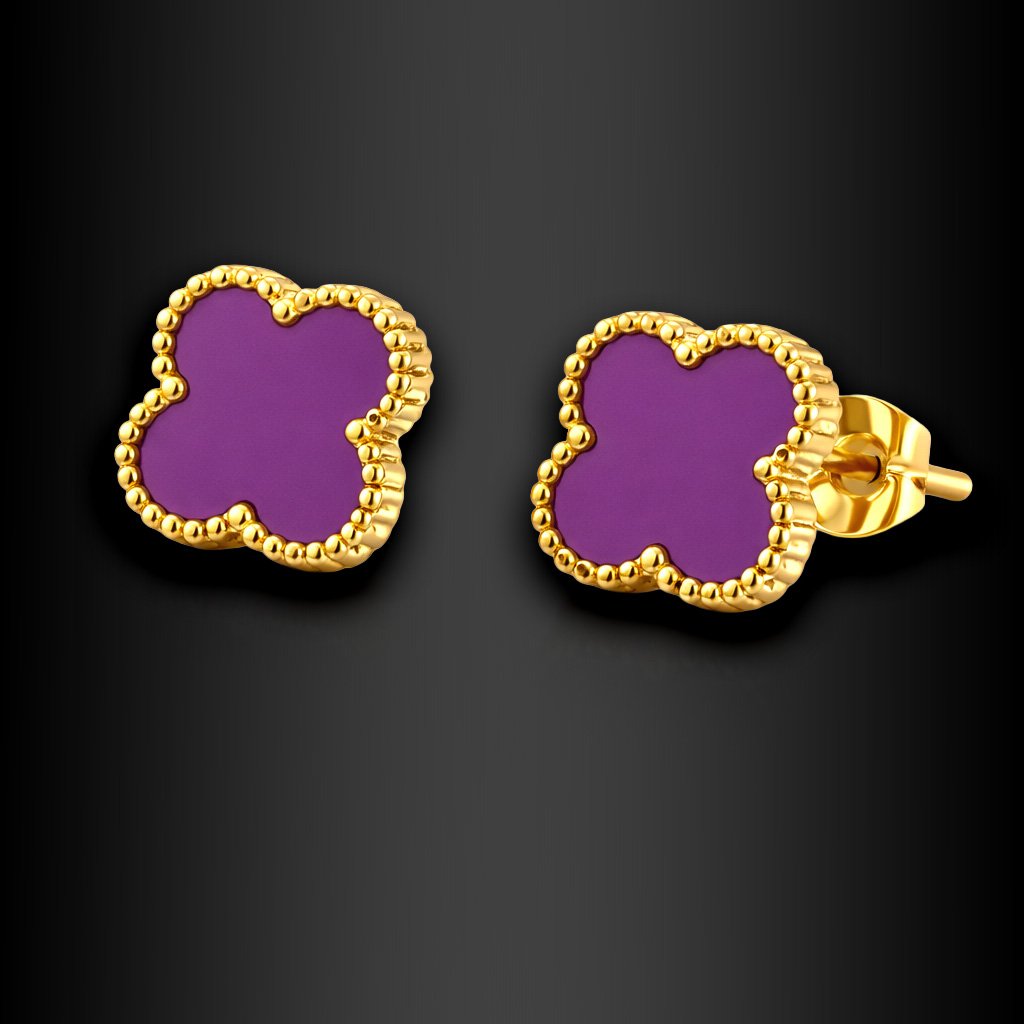 Dámské ocelové náušnice Lunayra Violet Gold inspirované Alhambra ♀️ DG Šperky