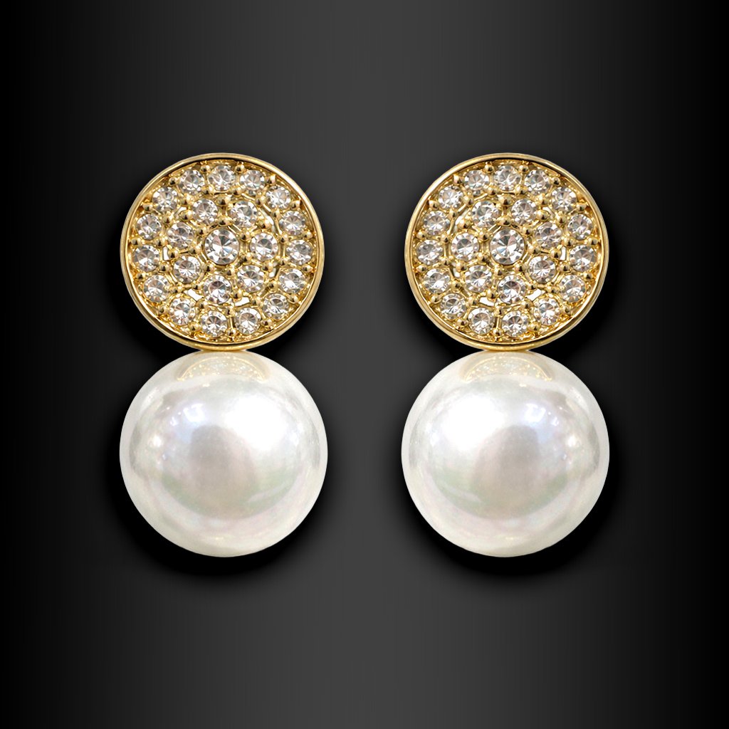 Dámské ocelové náušnice Mavell Gold se zirkony a říční perlou ♀️ DG Šperky
