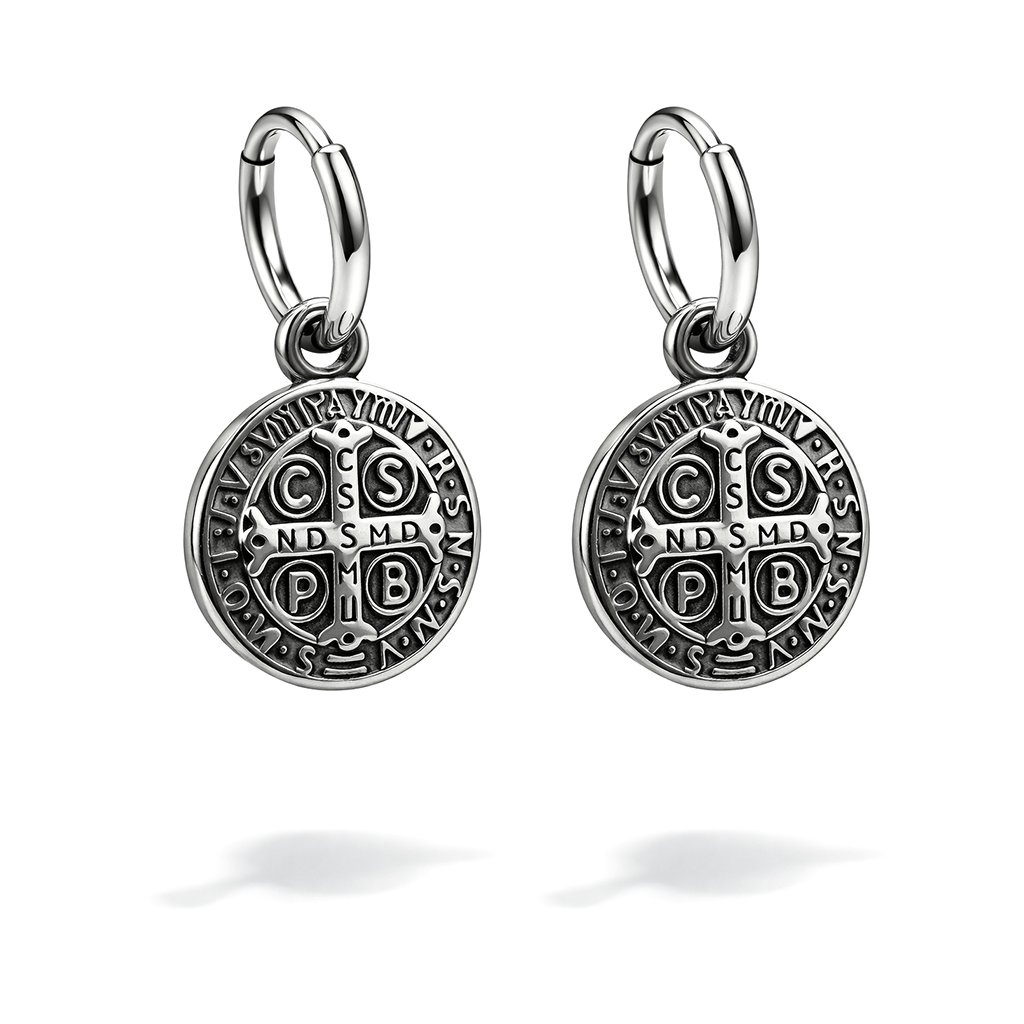 Medailonový přívěsek působí jako ochranný symbol nebo osobní znak – nenutí ke konkrétnímu výkladu, ale dává prostor vlastnímu významu. Chirurgická ocel dodává náušnicím odolnost, čistotu a dlouhodobý lesk.