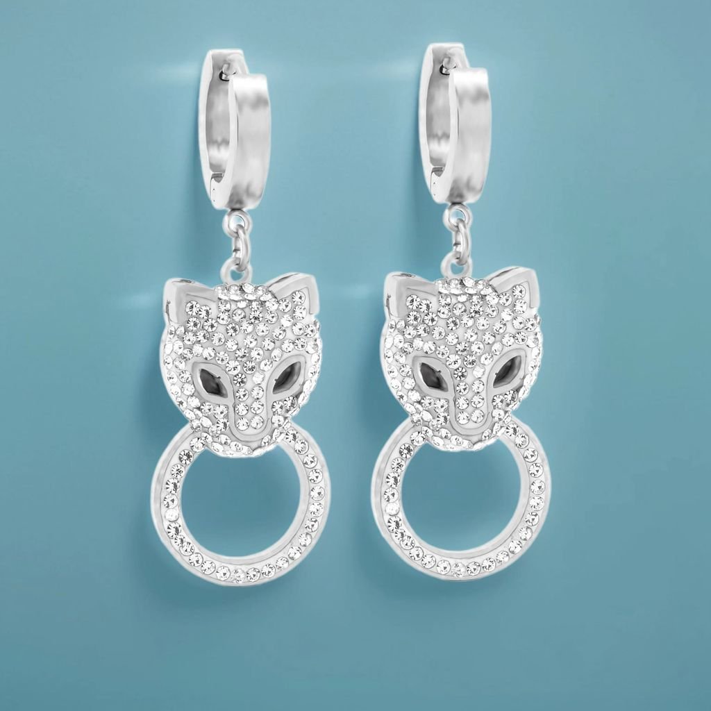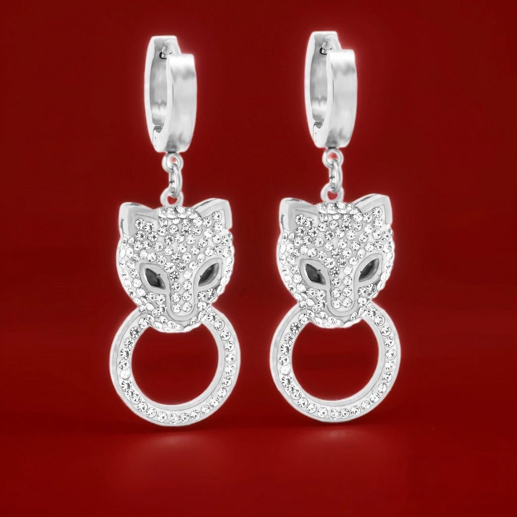 Pantera jsou elegantní náušnice z chirurgické oceli, které díky detailně propracované šelmí hlavě a zářivým zirkonům přitahují pohledy. Perfektní volba pro ženy, které hledají originální šperky s odvážným designem.