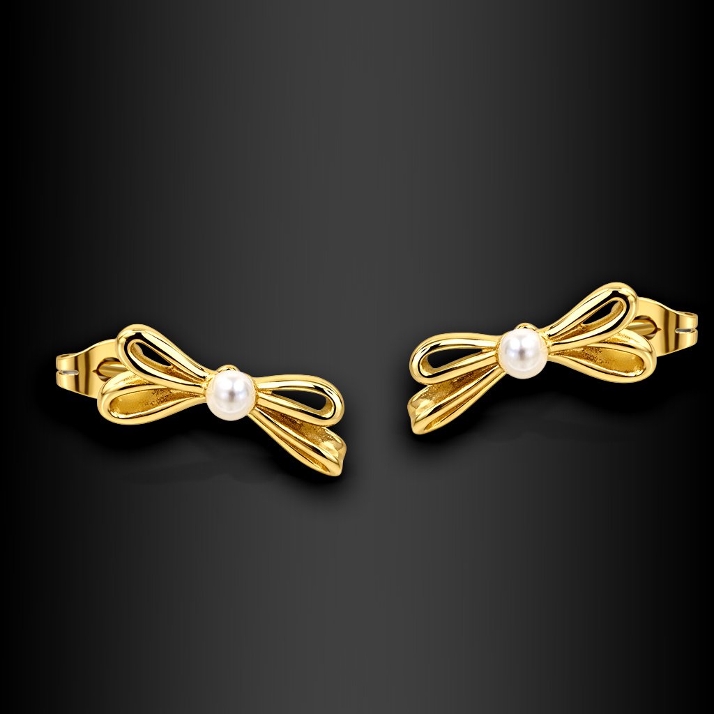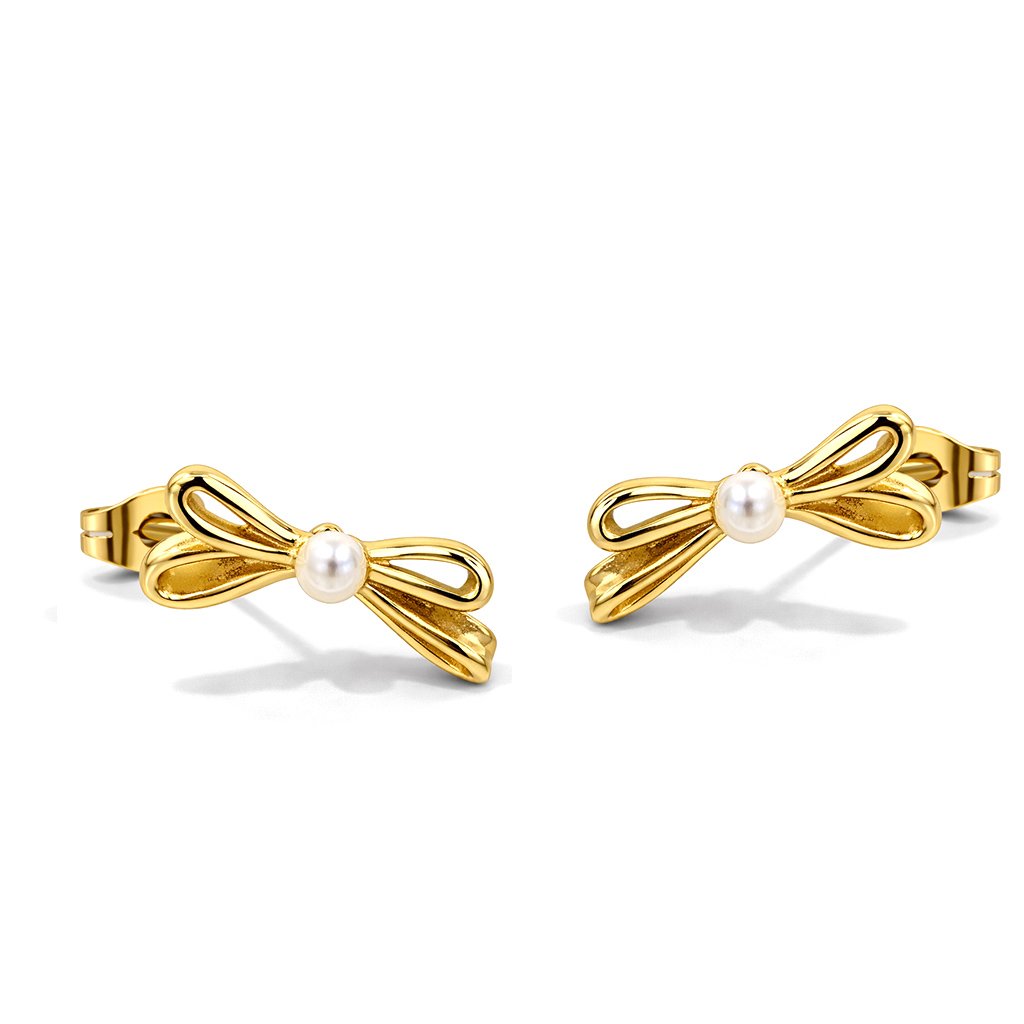 Dámské ocelové náušnice pecky Ameyra Gold s perličkou a mašličkou ♀️ DG Šperky