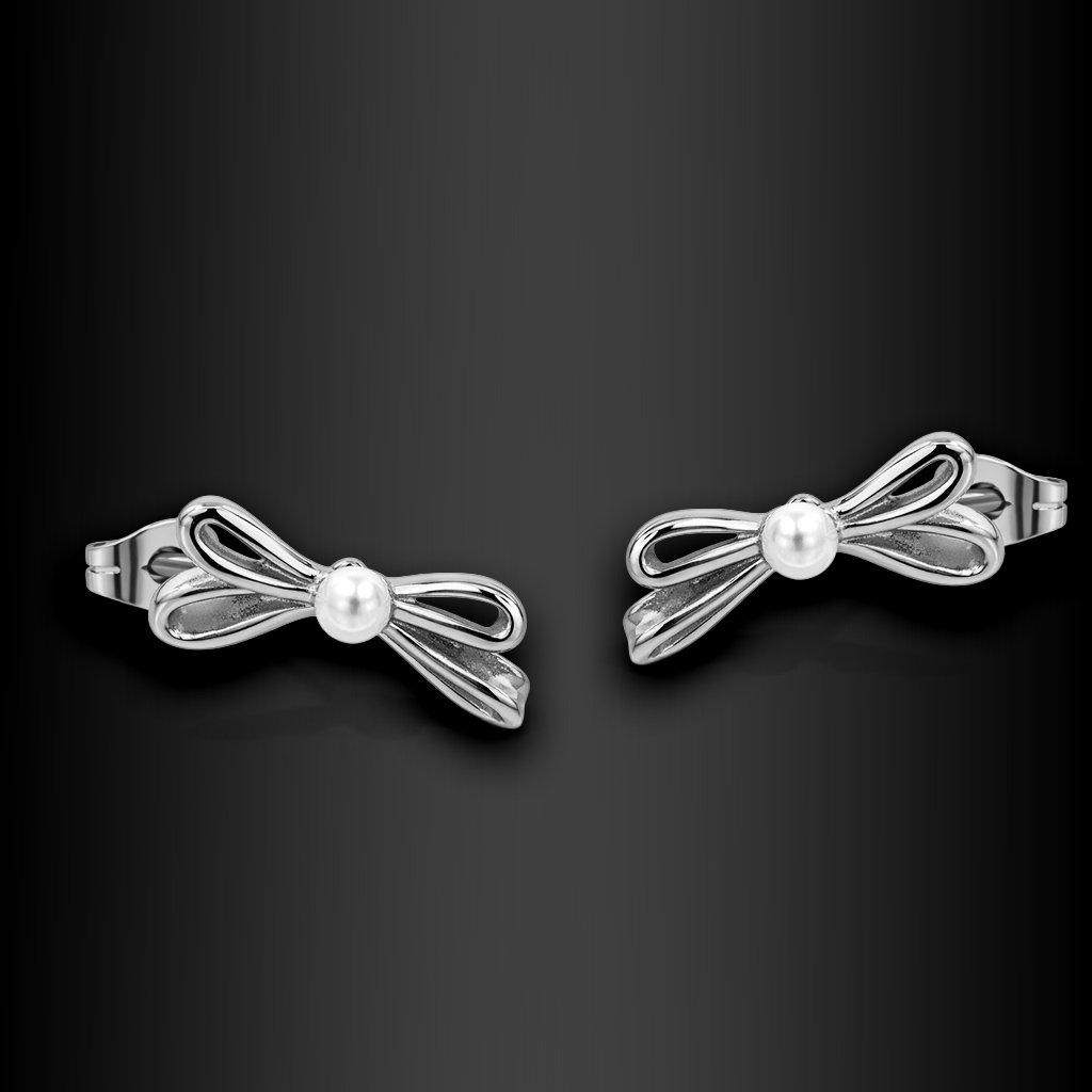 Dámské ocelové náušnice pecky Ameyra Silver s perličkou a mašličkou ♀️ DG Šperky
