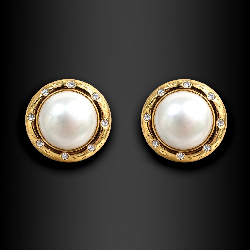 Dámské ocelové náušnice pecky Lucende Gold s perlou a zirkony ♀️ DG Šperky