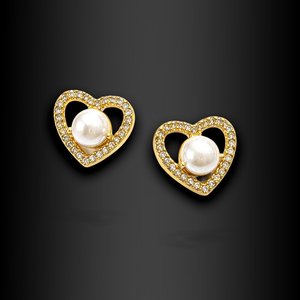Romantické dámské ocelové náušnice ve tvaru srdce, doplněné zirkony a jemnou říční perličkou. Elegantní detail s něžným výrazem 🖤 Exkluzivně na DG Šperky