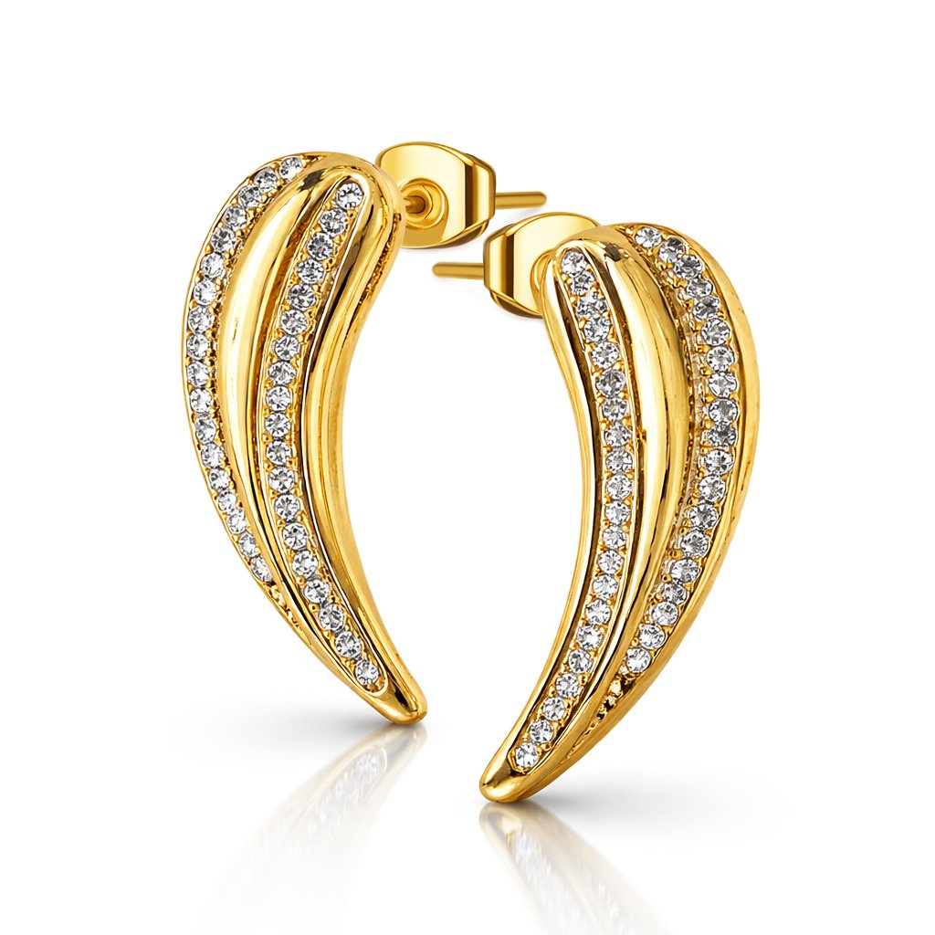 Kombinace chirurgické oceli ve zlatém tónu a třpytivých zirkonů vytváří dojem luxusu, který je vidět na první pohled. Díky délce ± 3 cm náušnice krásně orámují obličej a opticky ho prodlouží, aniž by působily těžce nebo nepohodlně. Zapínání na puzetu zajišťuje stabilitu a komfort i při celodenním nošení.