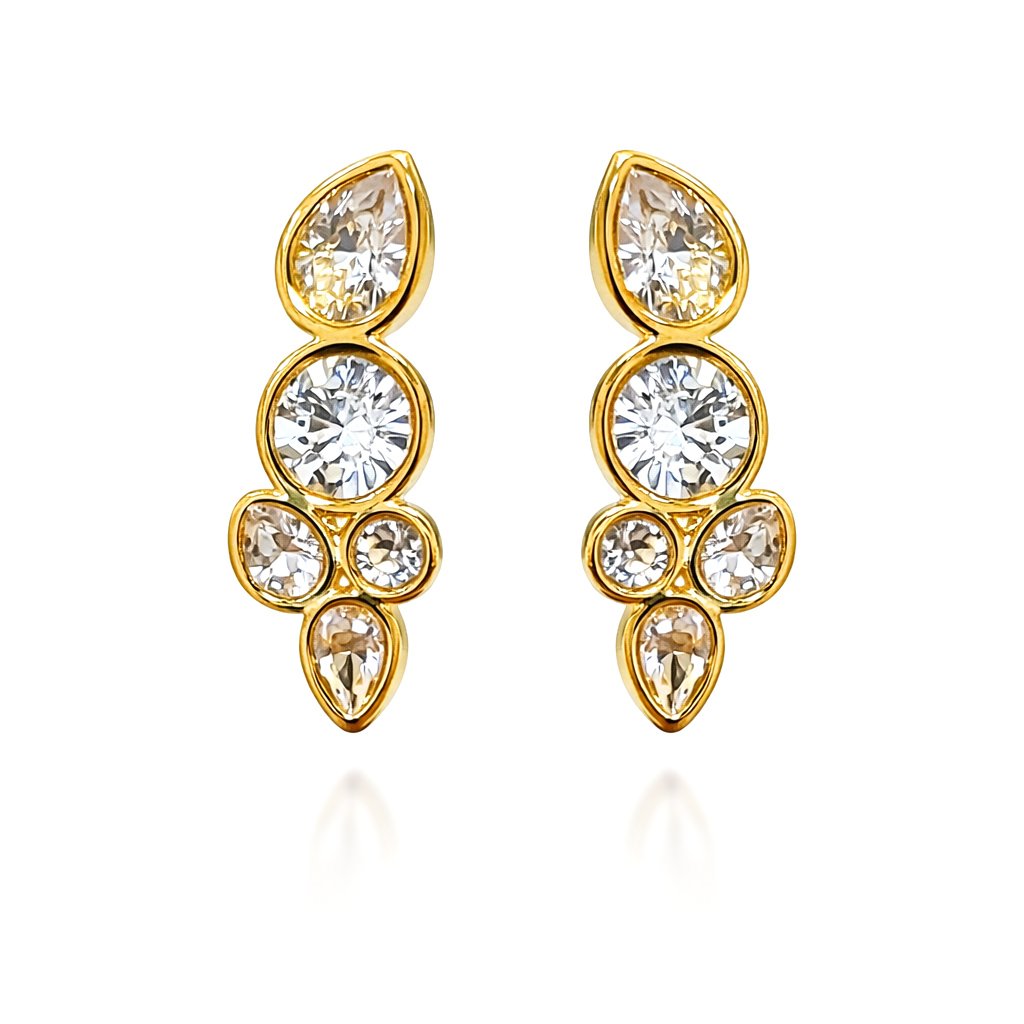 Tamar jsou dámské ocelové náušnice, které staví na harmonii tvarů, světla a detailu. Prodloužená silueta je tvořena kombinací kulatých a kapkovitých zirkonů, které na sebe plynule navazují a vytvářejí sofistikovaný celek. Každý kámen zachycuje světlo z jiného úhlu, díky čemuž náušnice působí živě a luxusně při každém pohybu.