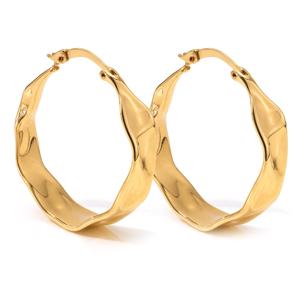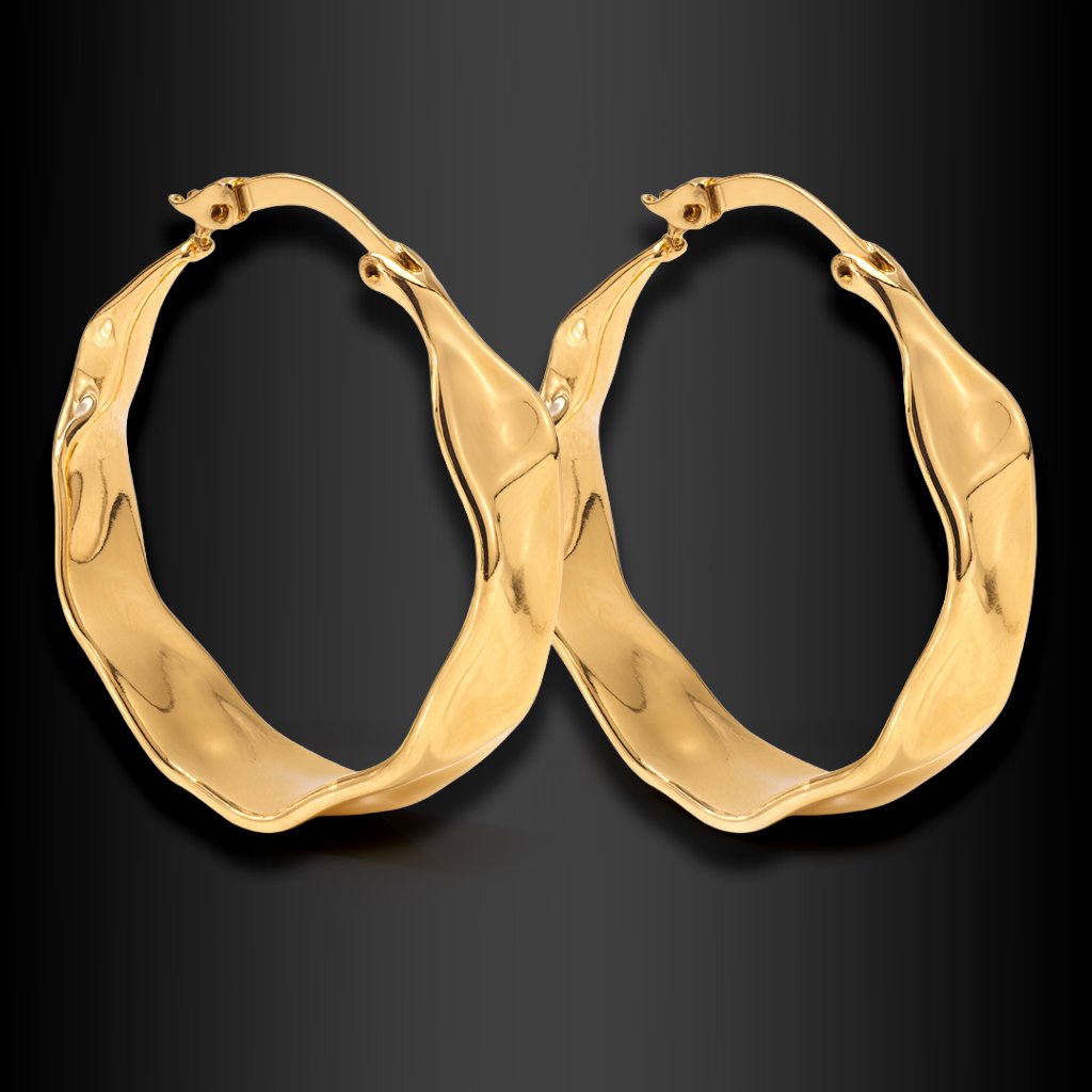 Luxusní dámské náušnice z chirurgické oceli ve zlatém provedení s originálním zvlněným designem. Elegantní, výrazné a nadčasové 🖤 Exkluzivně na DG Šperky