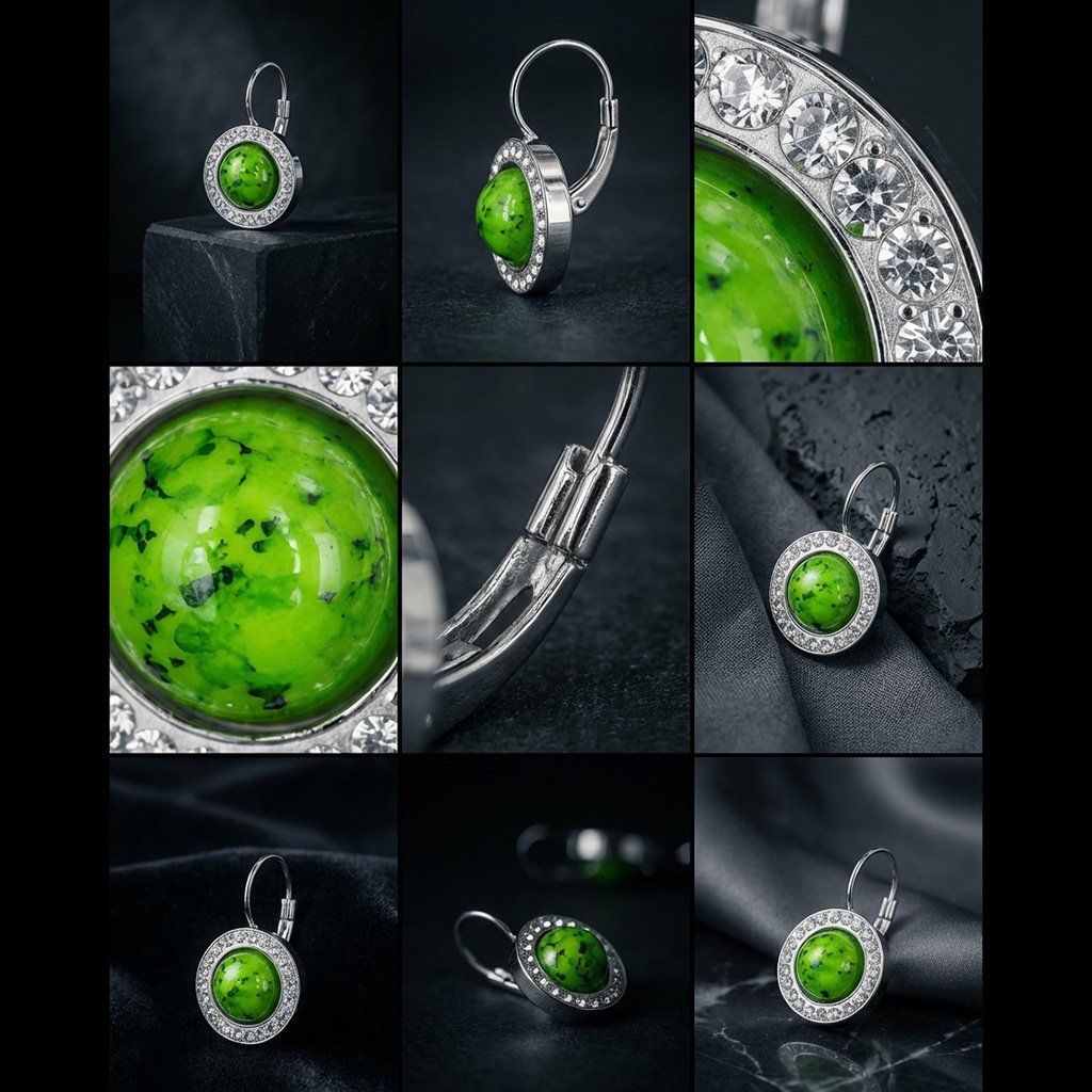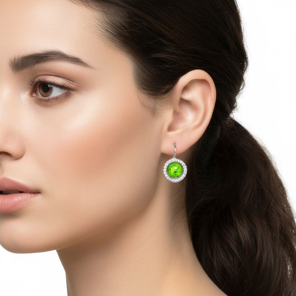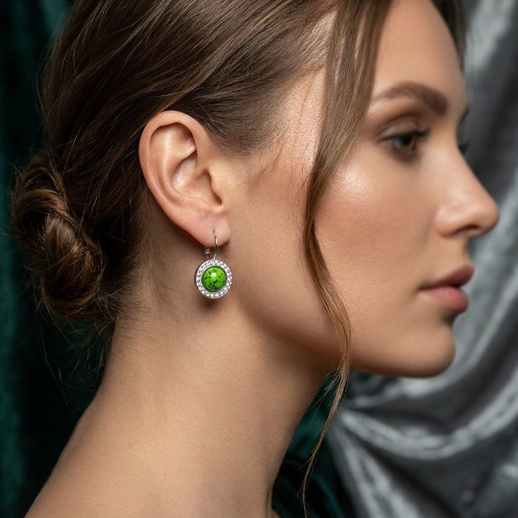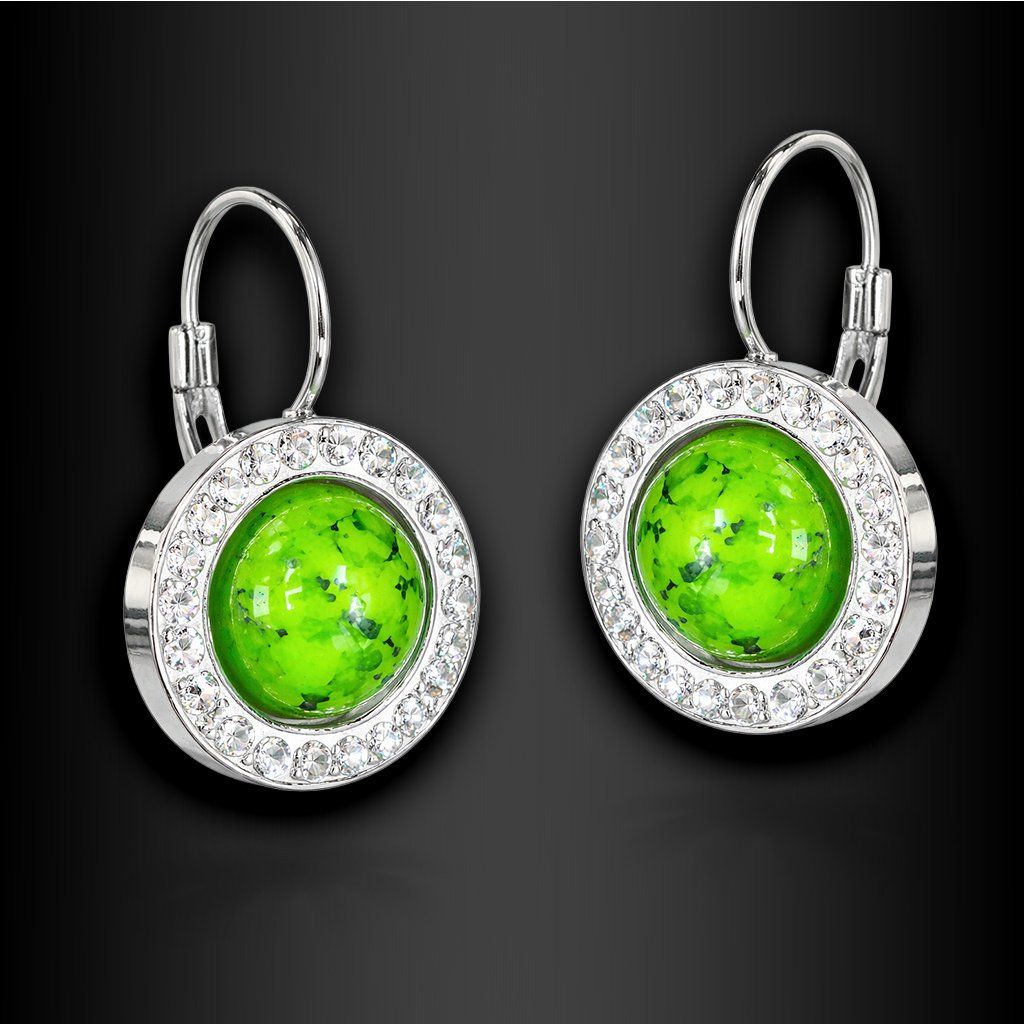 Dámské ocelové náušnice Zyphoria Silver Verde s mramorovaným kamenem a třpytivými zirkony ♀️ DG Šperky