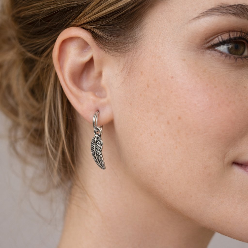 Díky plastickému 3D zpracování vyniká struktura peří při každém pohybu. Náušnice působí vzdušně, ale zároveň mají dostatečnou vizuální sílu, aby se staly dominantním doplňkem outfitu.