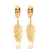 Ocelové náušnice ve tvaru peříčka z křídla anděla ve zlatém provedení, zdobené zirkony
