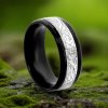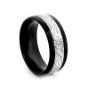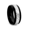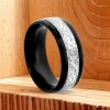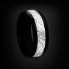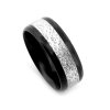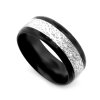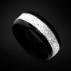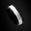 Moderní unisex ocelový prsten s elegantním černým provedením a stříbrným proužkem.