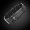 Elegantní černý ocelový náramek s destičkou na které je modlitba „Otče náš“.