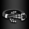Pánský dvojitý náramek zdobený kotvou s lebkami v kombinaci ocel a kůže