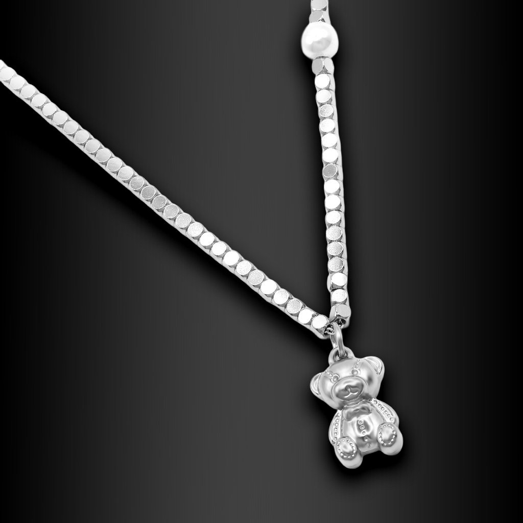 Perlička a medvídek - Ocelový náhrdelník pro dámy - Chirurgická ocel + Doprava zdarma + Dárkové balení zdarma
