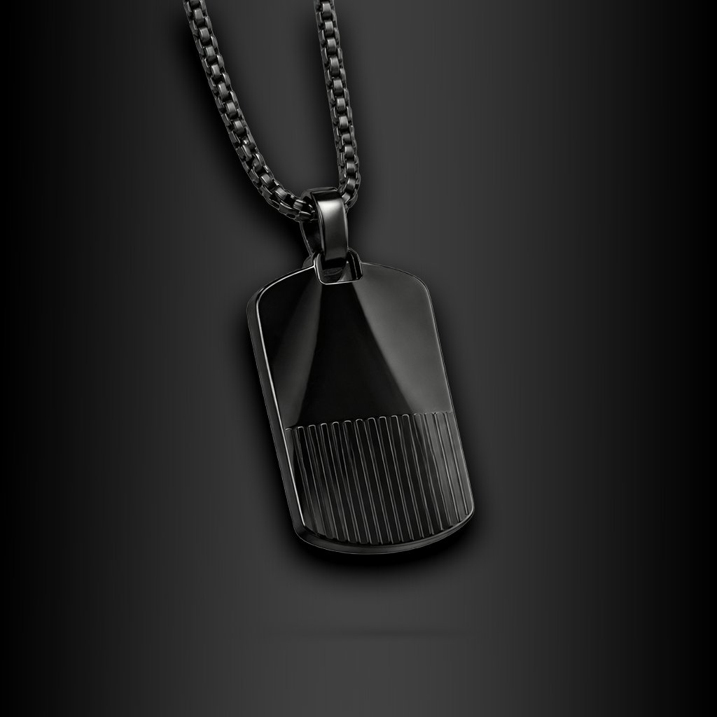Axiom je pánský přívěsek pro muže, kteří staví na pevných principech. Minimalistická ocelová destička v černém provedení působí klidně, vyváženě a sebejistě. Žádné symboly navíc, žádná okázalost – jen čistý tvar a jasný výraz.