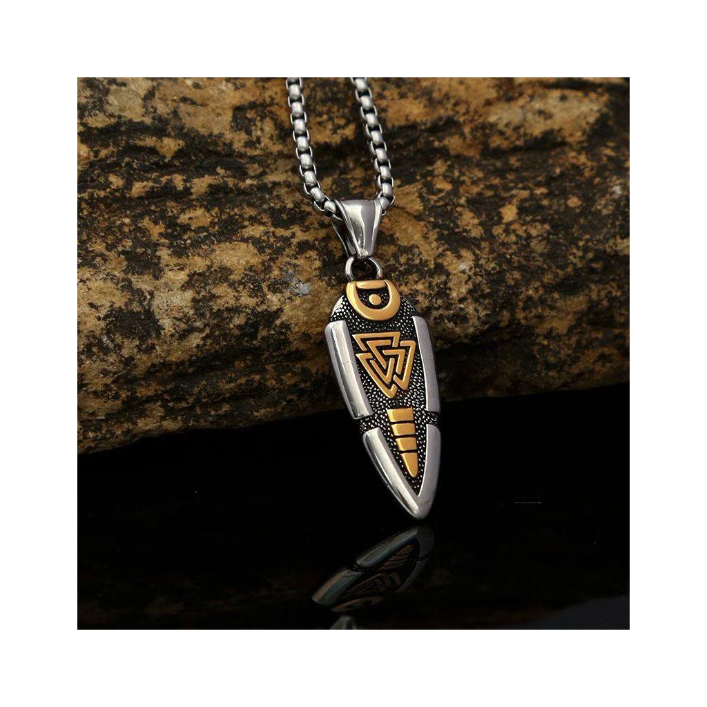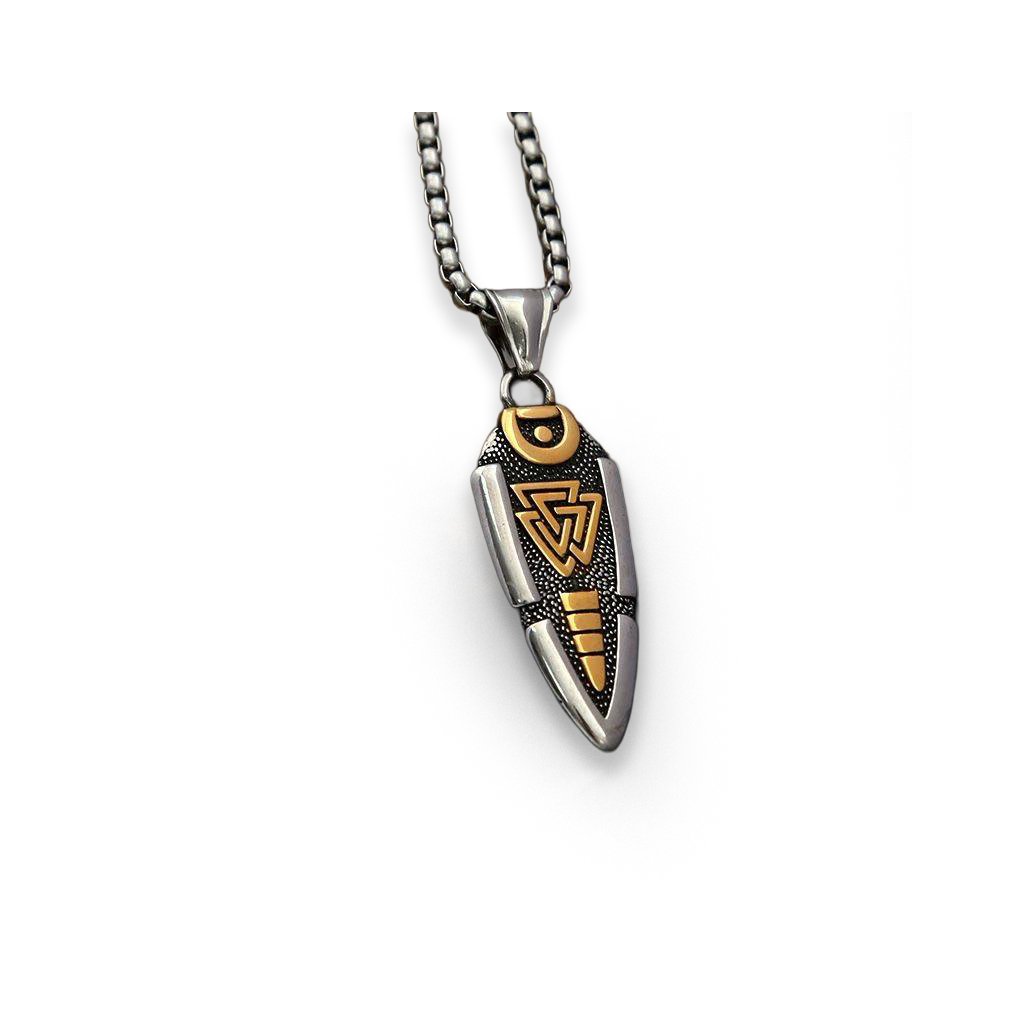 Výrazný vikingský design | Kombinace stříbrné a zlaté oceli | Symbol cílevědomosti a ochrany | Odolný materiál | Řetízek zdarma