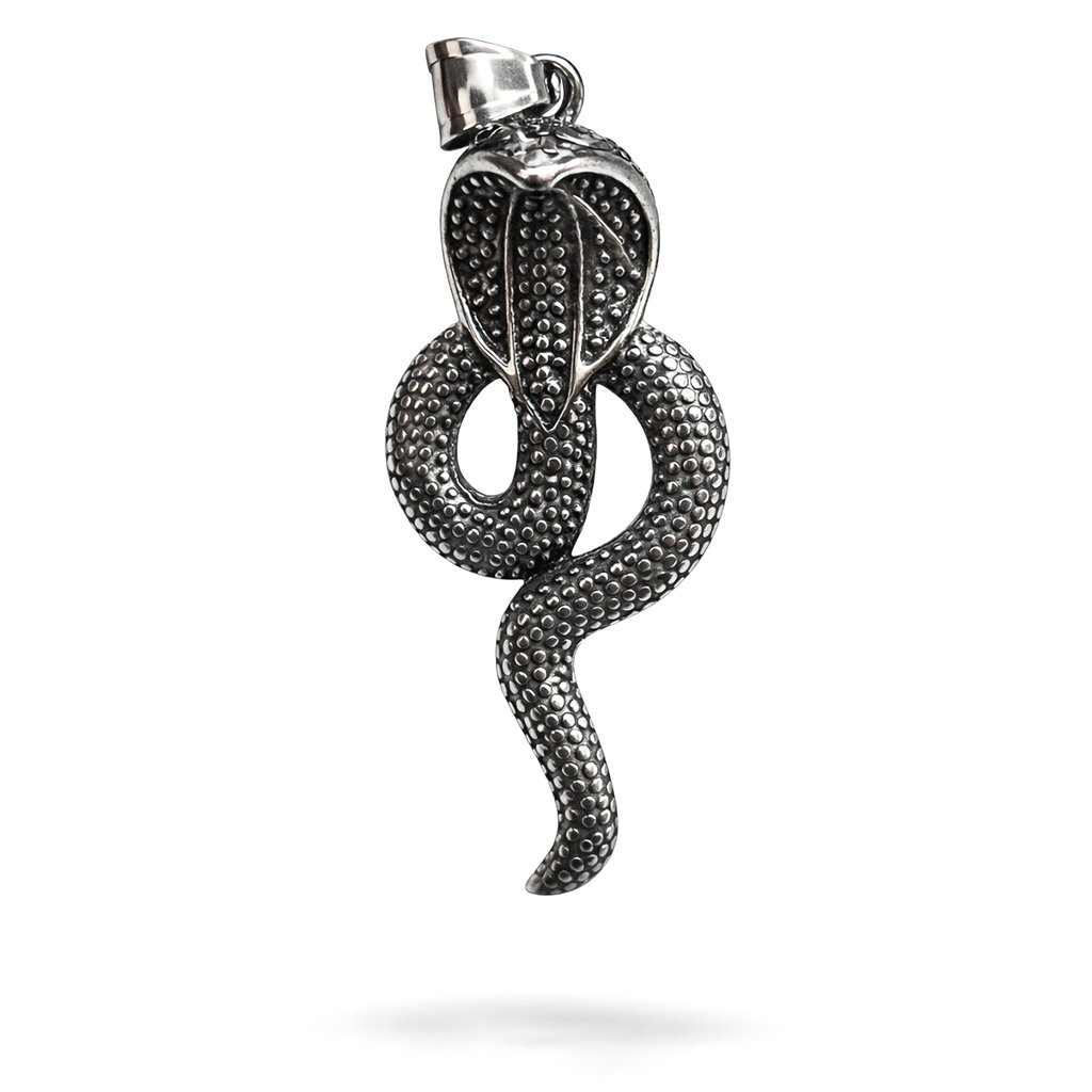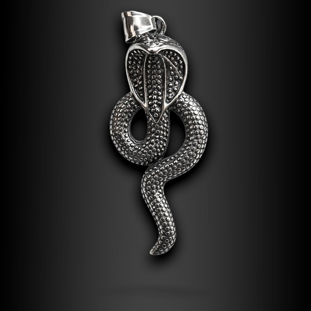 Třírozměrné zpracování dodává přívěsku hloubku a realismus. Detailní struktura šupin, plynulý tvar těla a výrazná hlava kobry vytvářejí silný vizuální dojem z každého úhlu. Velikost přívěsku je přibližně 5 cm, takže působí dominantně, ale stále vyváženě.