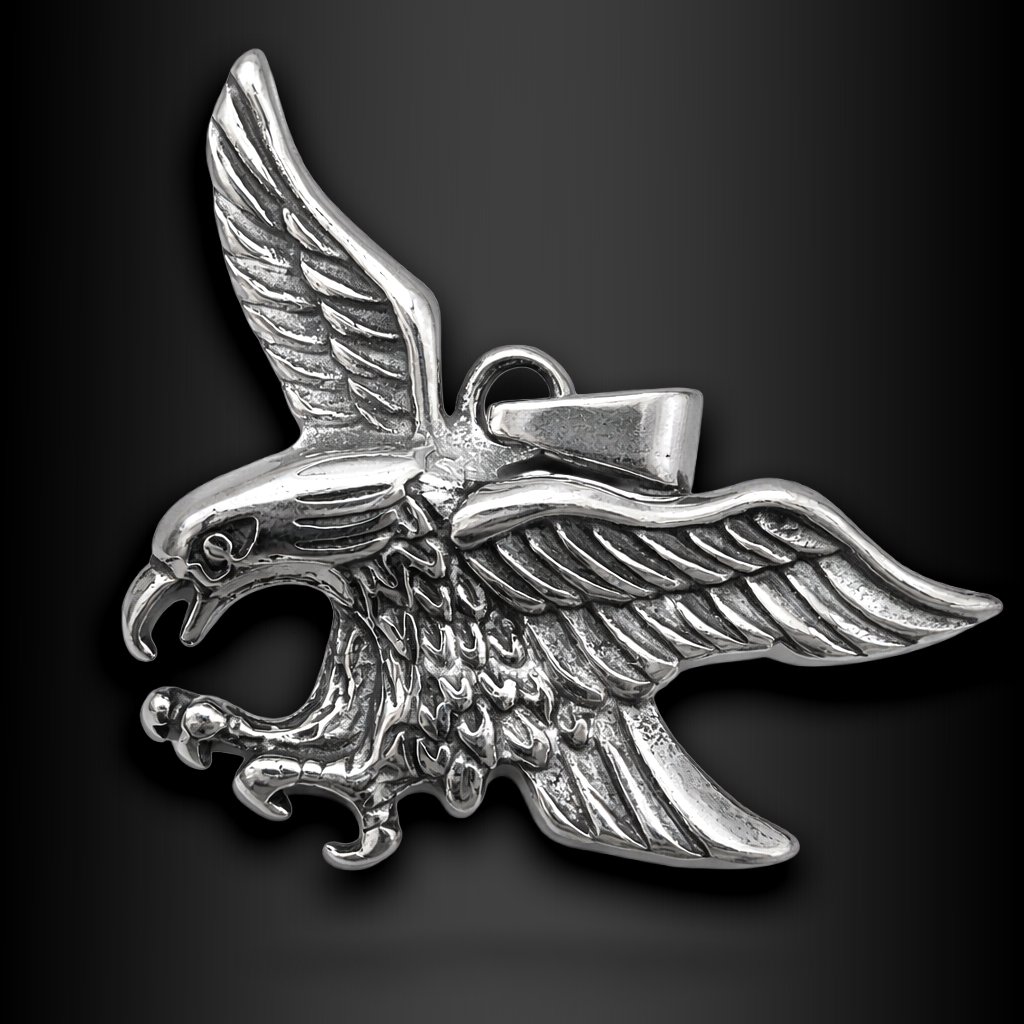 Detailní zpracování peří, hlavy i pařátů dodává přívěsku syrový, téměř agresivní charakter. Tohle není šperk pro každého – je to znak svobodného muže, který si jede vlastní cestu.
