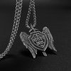Quisut Deus - Pánský ocelový přívěsek s mečem, štítem a andělskými křídly. Symbol síly, víry a ochrany.