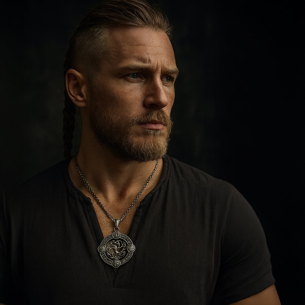 Představujeme přívěsek Runar, který v sobě spojuje severské runy, posvátné symboly a kruh života. Tento amulet je vyroben z chirurgické oceli, která mu dodává téměř neomezenou odolnost. Ačkoliv patří mezi menší pánské šperky, jeho detailní zpracování a mystický design z něj dělají výrazný doplněk, který upoutá pozornost.