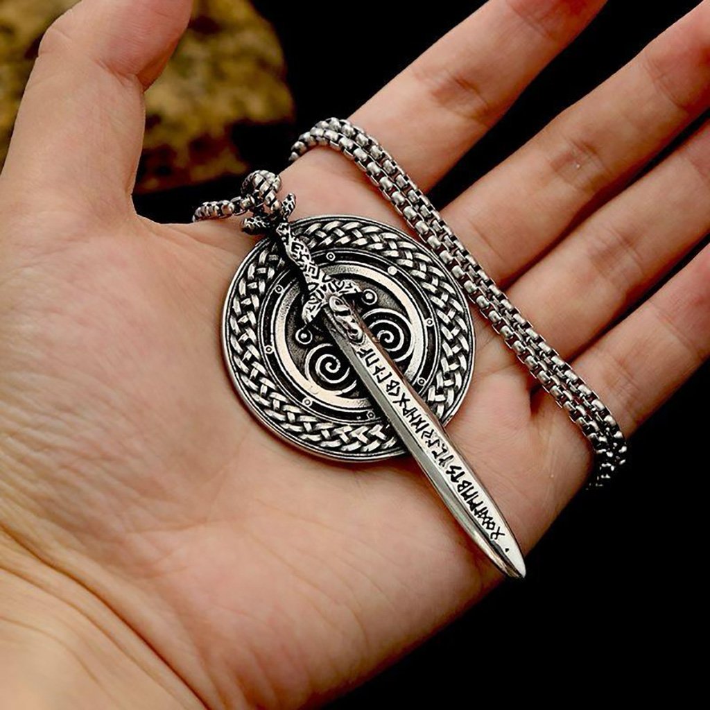 Představujeme vám výrazný pánský přívěsek Skjoldr, který spojuje vikingský štít a runový meč – dvě prastaré zbraně válečníků. Tento šperk je vyroben z kvalitní chirurgické oceli, která zaručuje dlouhou životnost a odolnost vůči poškození. Díky svému detailnímu zpracování a mystickým runám na čepeli se stává nejen ozdobou, ale i silným amuletem ochrany a odvahy.