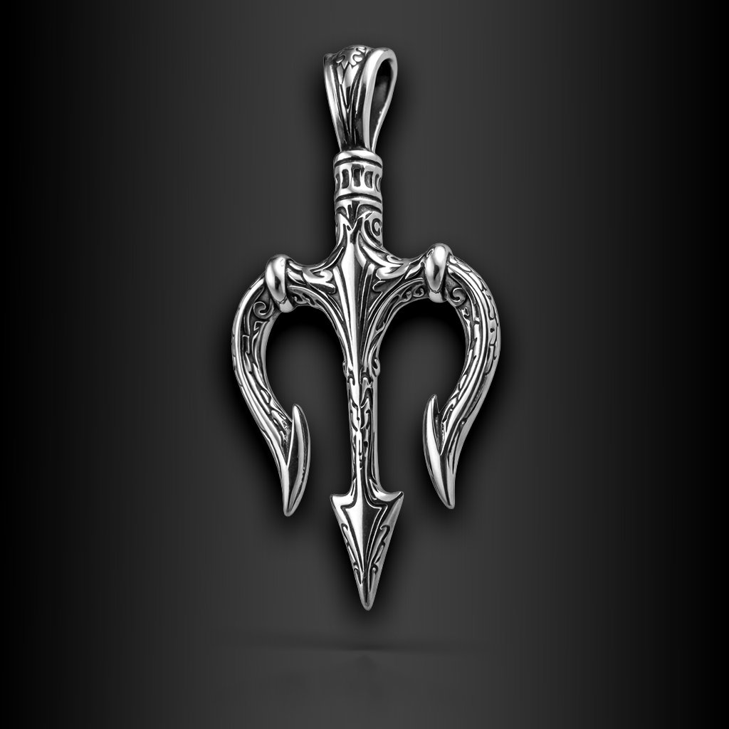 Pánský přívěsek Trigon ve tvaru trojzubce – symbol síly, rovnováhy a vlády nad živly. Masivní design s řetízkem zdarma 🖤 Exkluzivně na DG Šperky