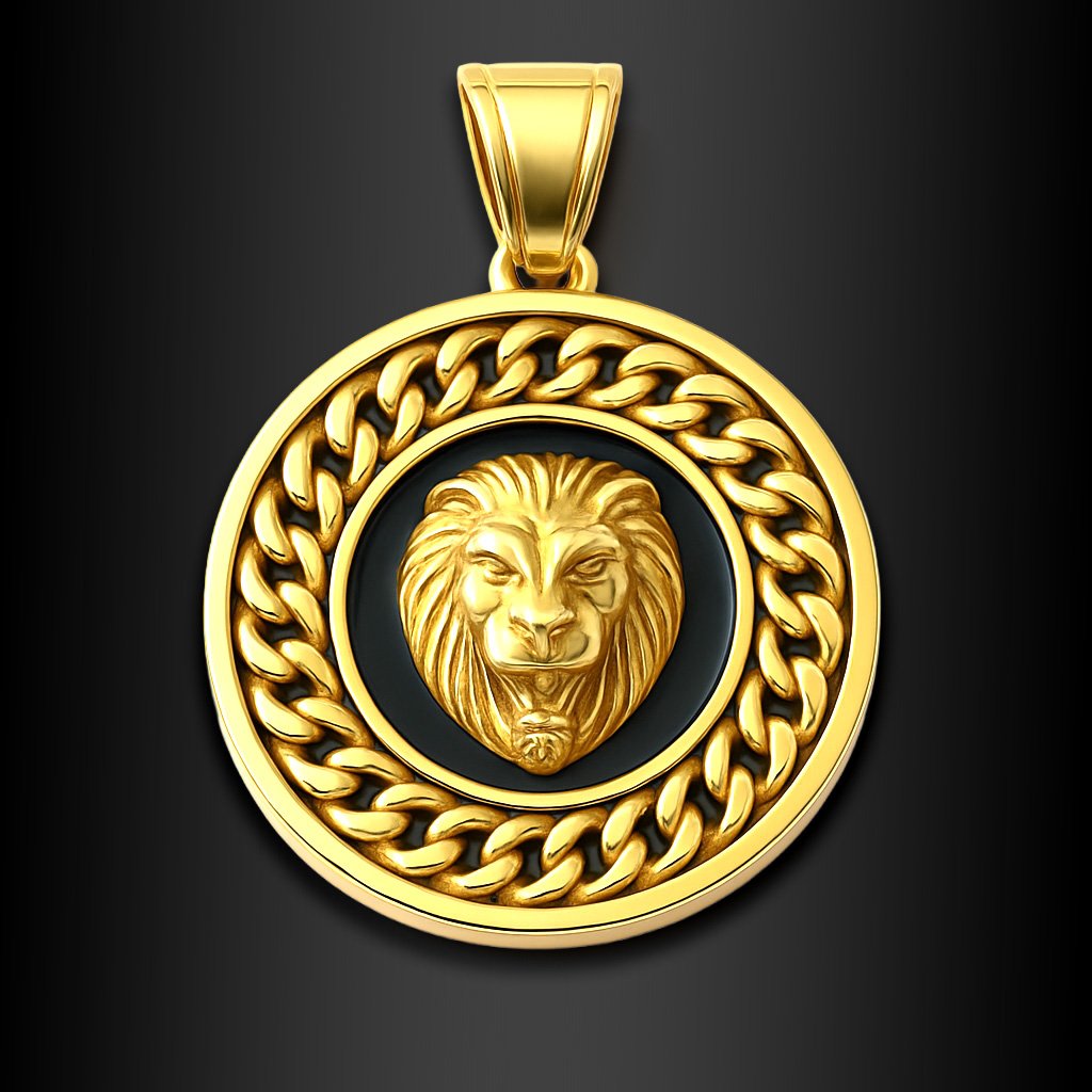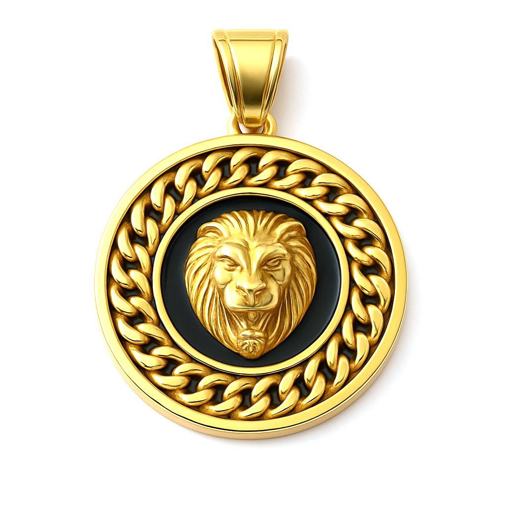 Valiente Gold je odvážné vyjádření vnitřní síly a nezlomného ducha. Detailní zlatá hlava lva, zasazená do černého středu a obklopená efektním řetězovým vzorem, vytváří kontrast, který okamžitě zaujme. Tento šperk je jako zlatý pečetní prsten moderního dobyvatele – jen visí na krku.