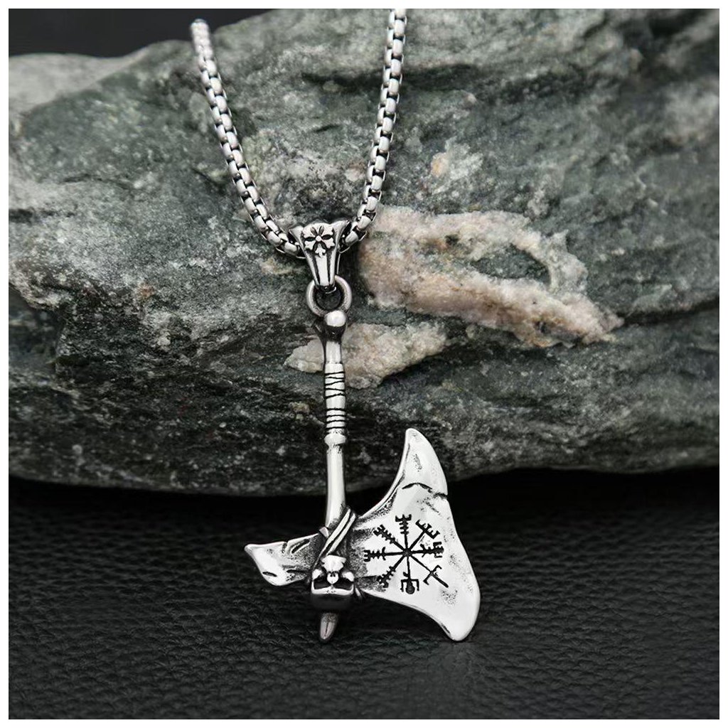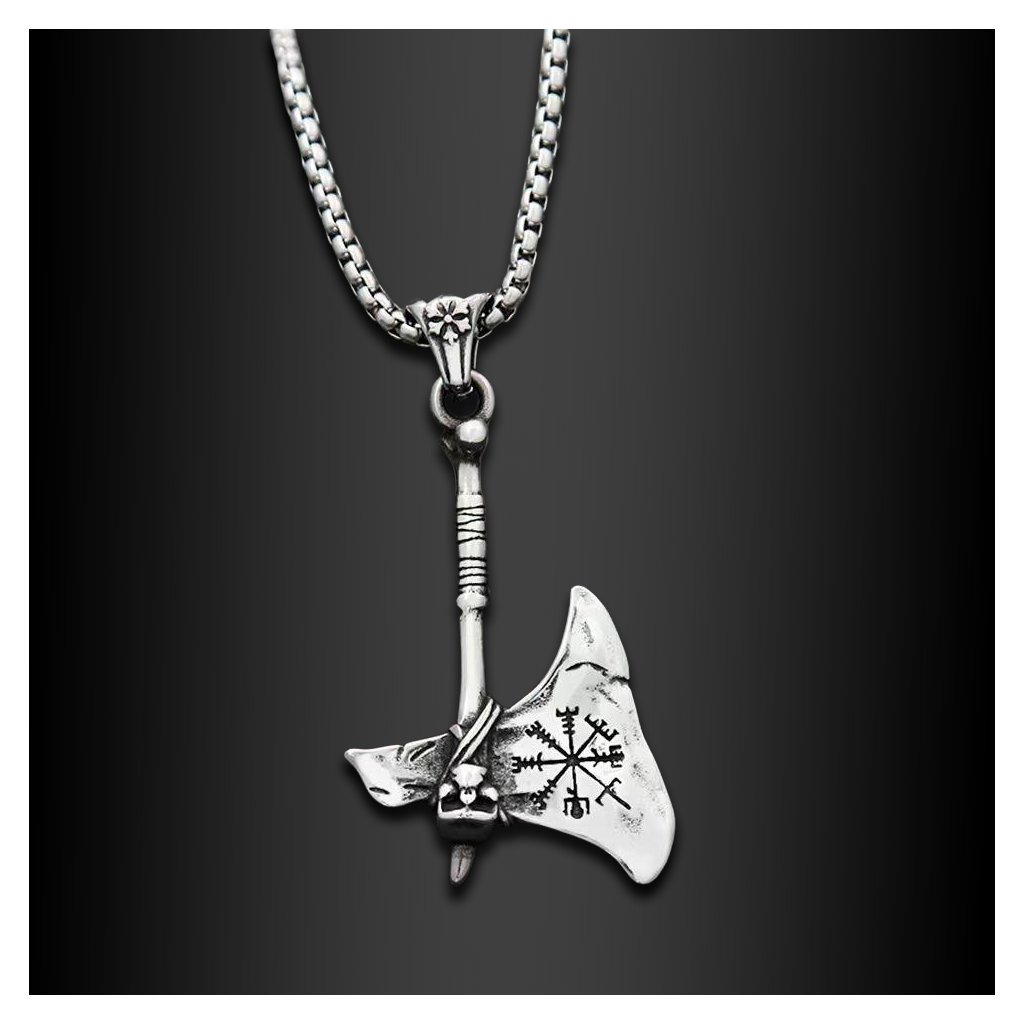 Masivní severský přívěsek ve tvaru válečné sekery s runovým symbolem pro sílu a ochranu. Ideální pro muže, kteří chtějí dominantní šperk 🖤 Exkluzivně na DG Šperky