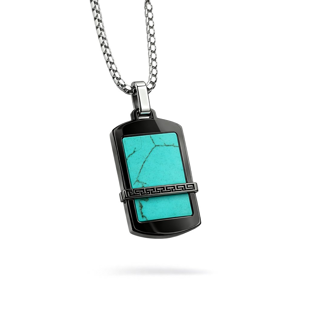 Výrazný pánský ocelový přívěsek Veltrix s tyrkysovým kamenem a ocelovým řetízkem zdarma. Styl, síla a klid v jednom detailu 🖤 Exkluzivně na DG Šperky