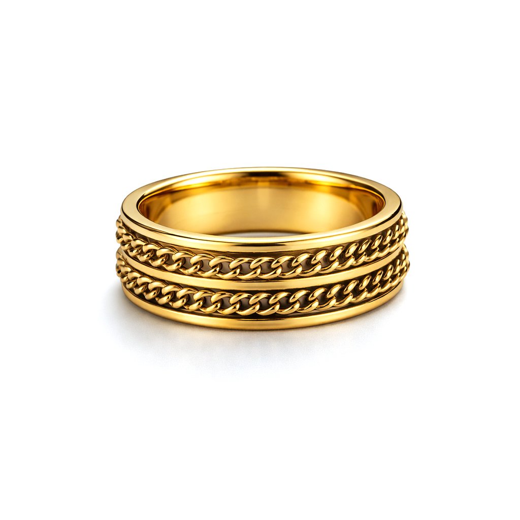 Amoritto je unisex ocelový prsten navržený pro ty, kteří hledají víc než jen doplněk. Dominantním prvkem je řetězový motiv, jenž obíhá celý prsten a vytváří dojem pevného, nepřerušeného spojení. Právě díky této symbolice je Amoritto oblíbenou volbou i jako netradiční snubní prsten.