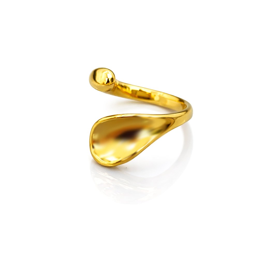 Prsten má otevřenou konstrukci v univerzální velikosti a díky svému plynulému tvaru působí na ruce lehce, přesto výrazně. Skvěle funguje samostatně, ale neztratí se ani v kombinaci s dalšími minimalistickými šperky.