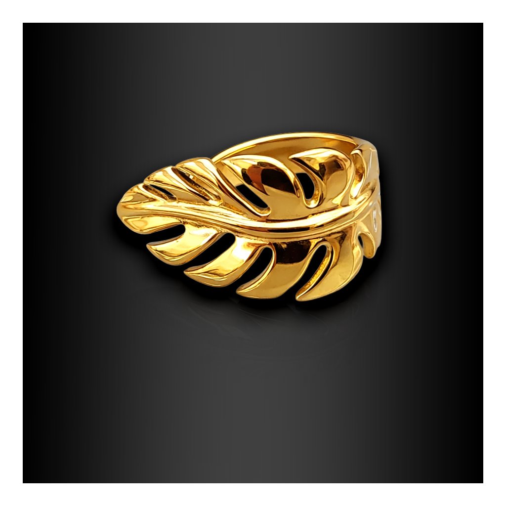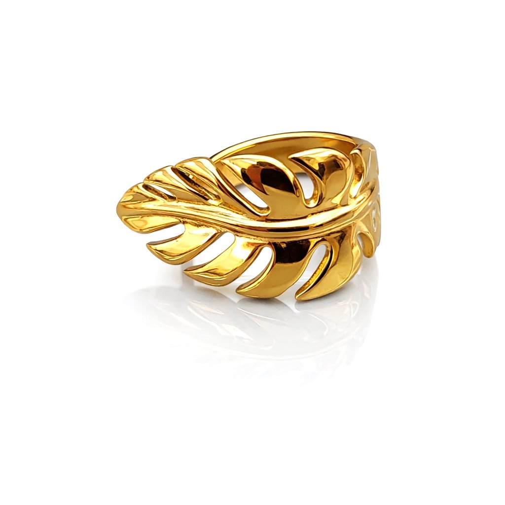 Celestia není jemný doplněk. Je to prohlášení. Mohutný prsten přes dva prsty s dominantní hlavou ve tvaru stylizovaného listu působí jako šperk inspirovaný přírodou, ale zpracovaný s moderní odvahou. Přesně ten typ kousku, který změní celý outfit jedním pohledem.