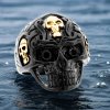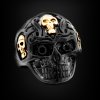 Stylový pánský prsten Mortal z oceli ve tvaru lebky s černo-zlatým designem.