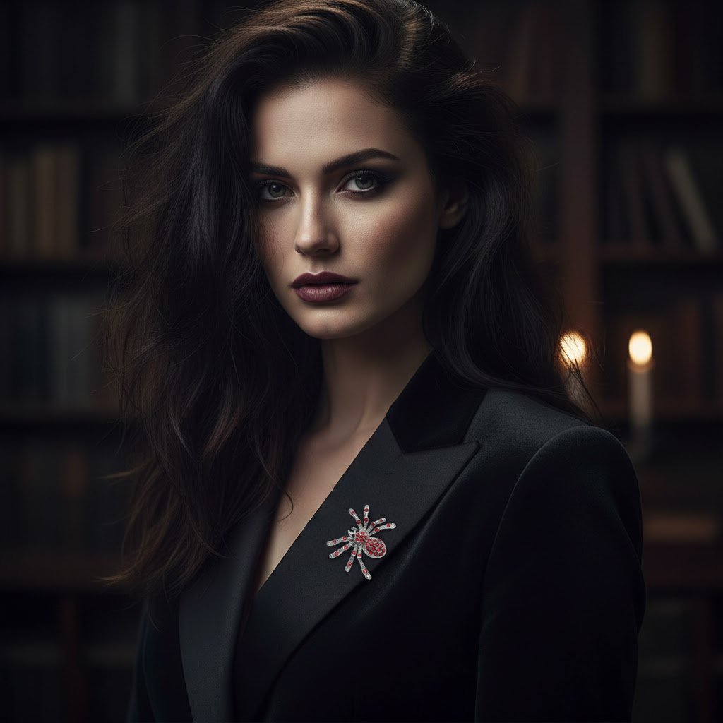 Spidera není jen klasická brož – lze ji nosit na saku, kabátu, šatech, ale také jako ozdobu do vlasů nebo na kabelce, kde vytvoří nečekaný a stylový detail.